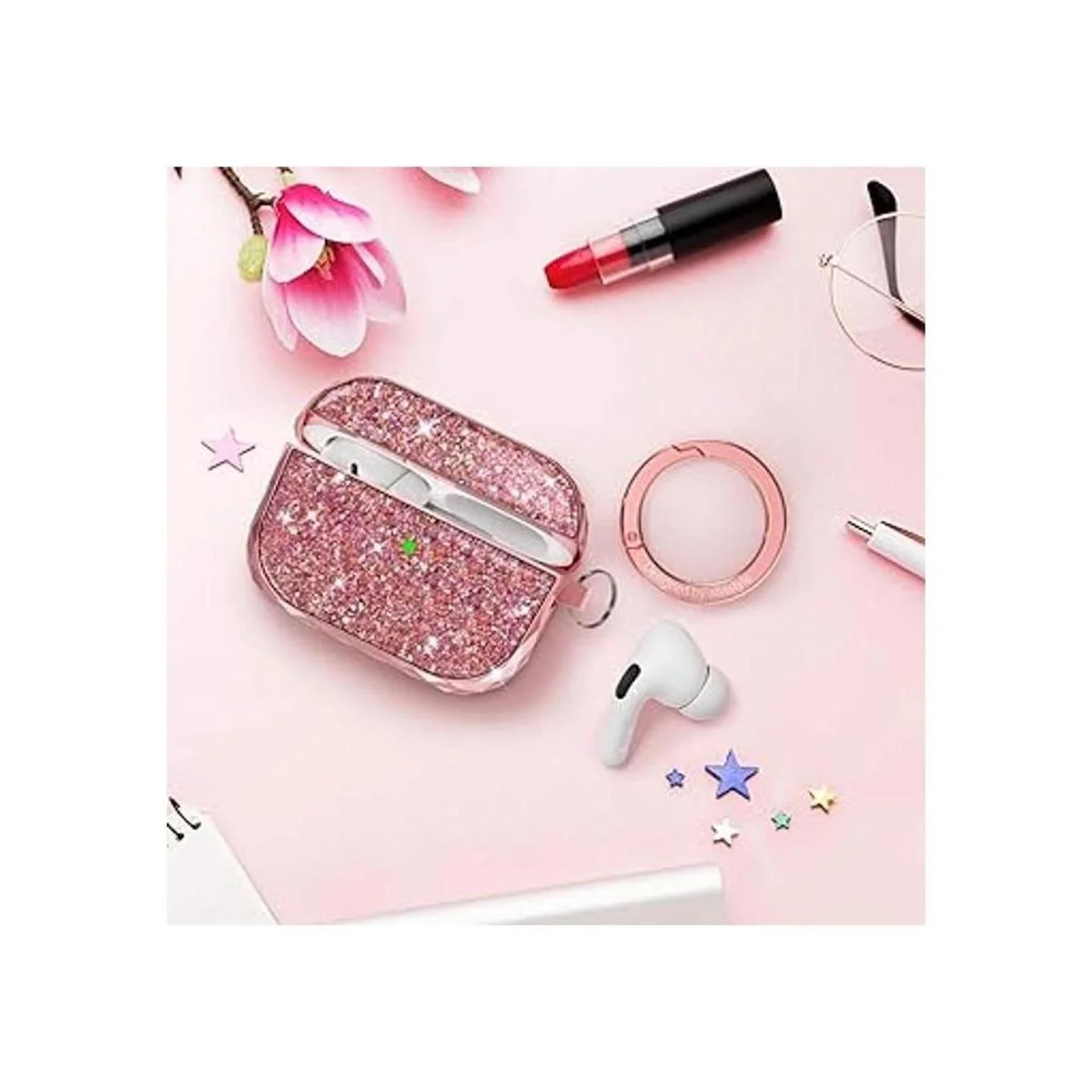 Funda brillante: llamativo diseño de purpurina con superficie lisa que hace que tus AirPods Pro sean más atractivos y cómodos al tacto.