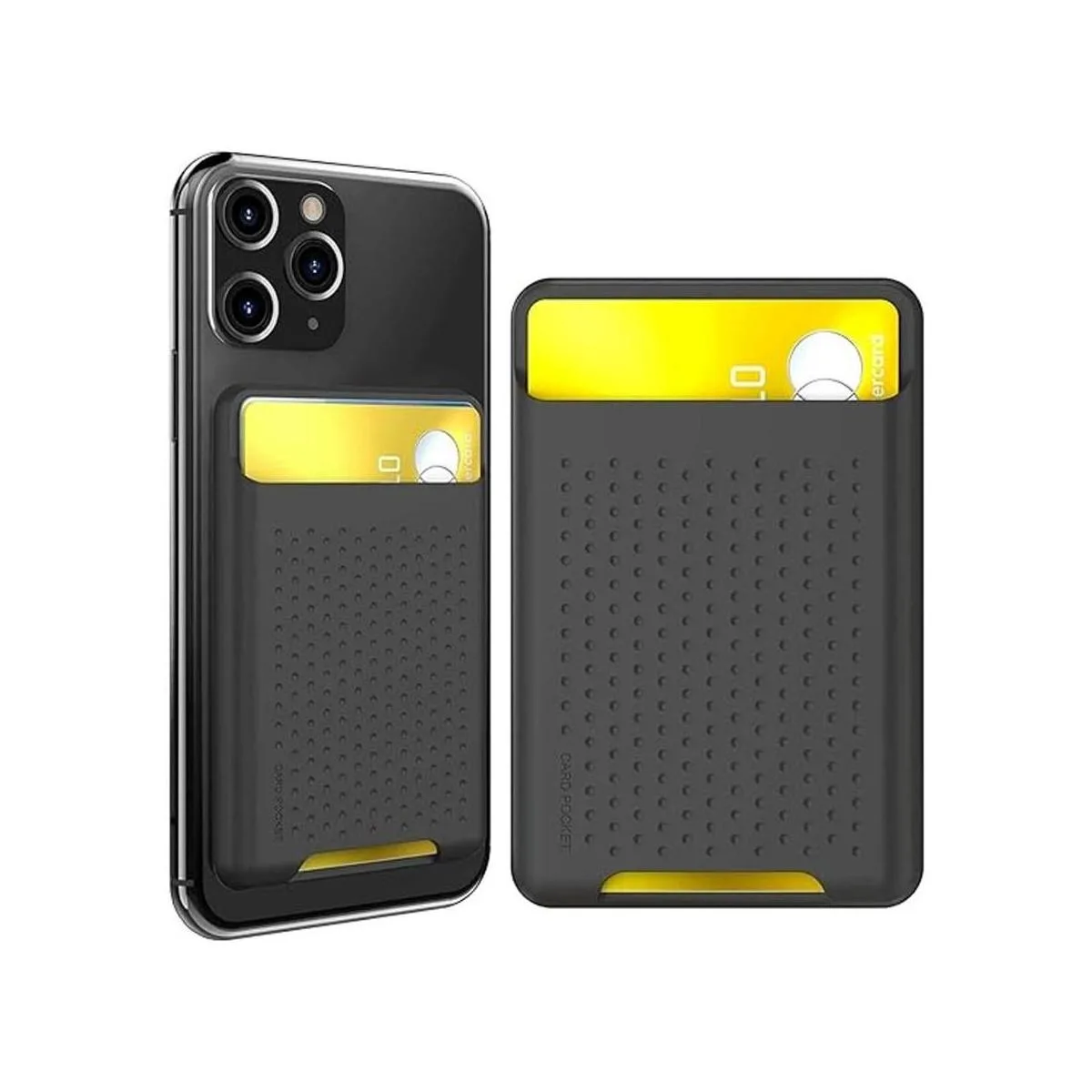 AhaStyle Soporte para tarjetas de crédito para teléfono, billetera delgada para teléfono, funda de silicona adhesiva fuerte compatible con iPhoneAndroidSamsung Galaxy negro