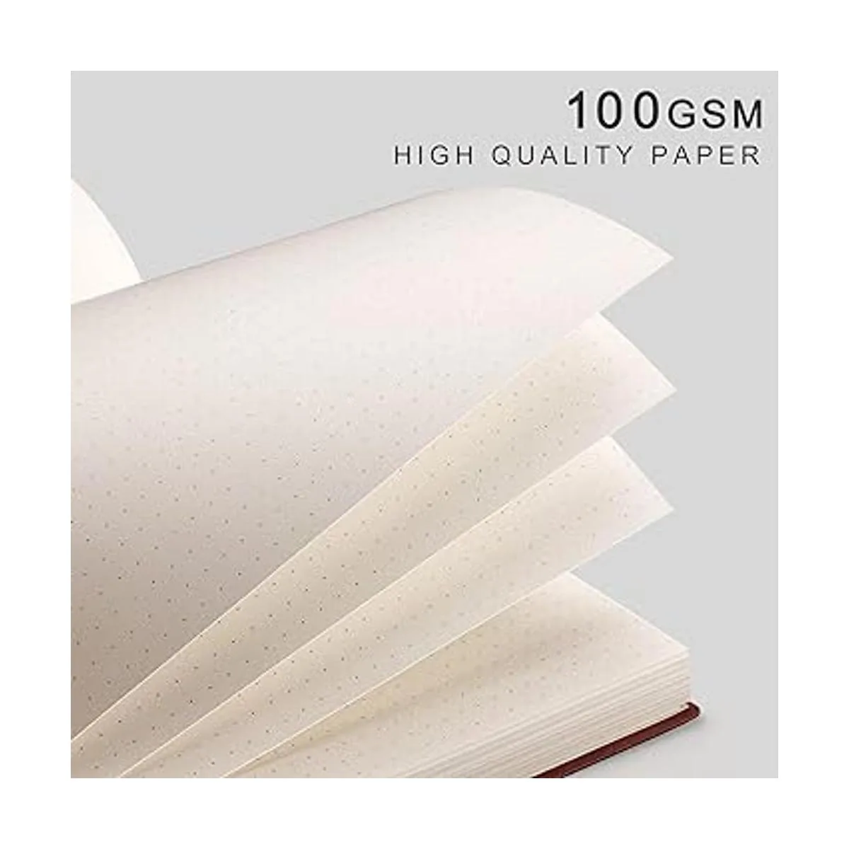 Papel grueso de 4.23 oz/m: el cuaderno de cuadrícula de puntos adopta papel grueso de marfil sin ácidos de 4.23 oz/m que es un 30 más grueso de lo normal, apto para pluma estilográfica, no se traspasa ni fantasma.