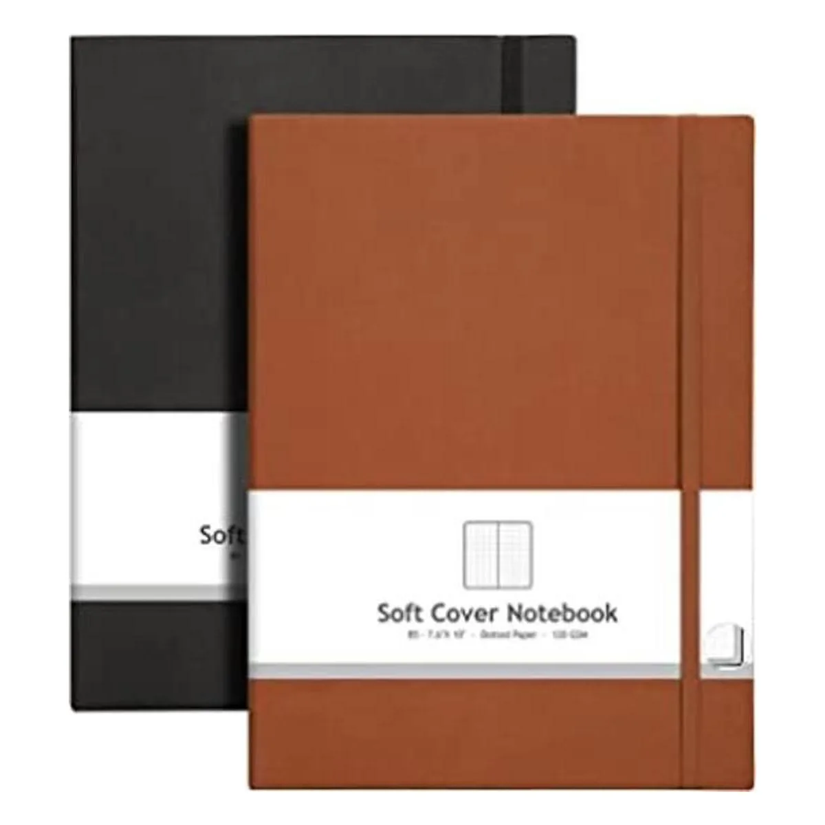 AHGXG Paquete de 2 diarios de puntos de bala B5 Cuaderno grande de cuadrícula de puntos 7.6 x 10 pulgadas con papel grueso de puntos de 4.23 ozm, cubierta de cuero suave, total 320 páginas, bolsillo interior, color marrón negro