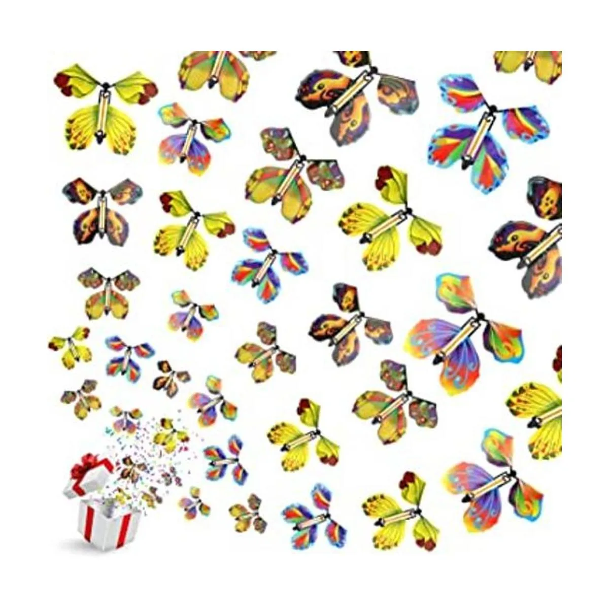 AhlsenL 20 juguetes de mariposa voladora, caja sorpresa de mariposa voladora, juguete sorpresa para bodas, fiestas de cumpleaños, libros y tarjetas de felicitación 5 estilos