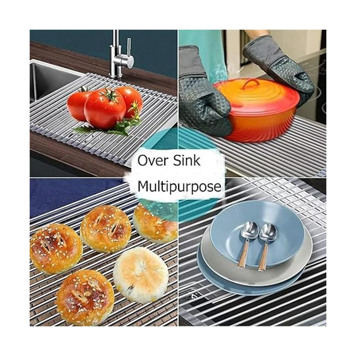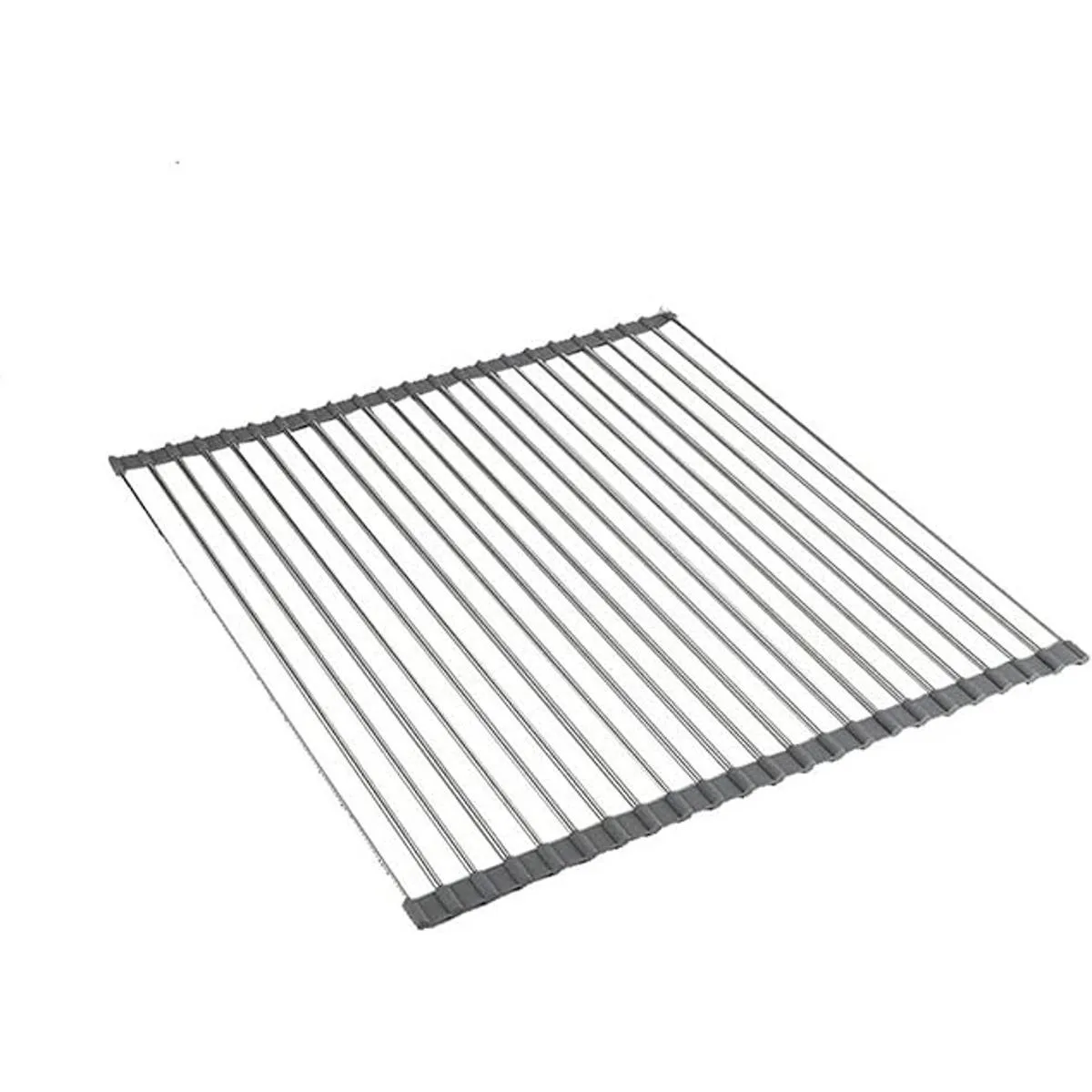 Estante de secado enrollable multiusos sobre el fregadero: desenrollar sobre un fregadero abierto para secar platos lavados al aire, para espacio adicional en la encimera o como salvamanteles. Escurridores de platos de verduras y frutas, grandes estantes de cocina para encimera