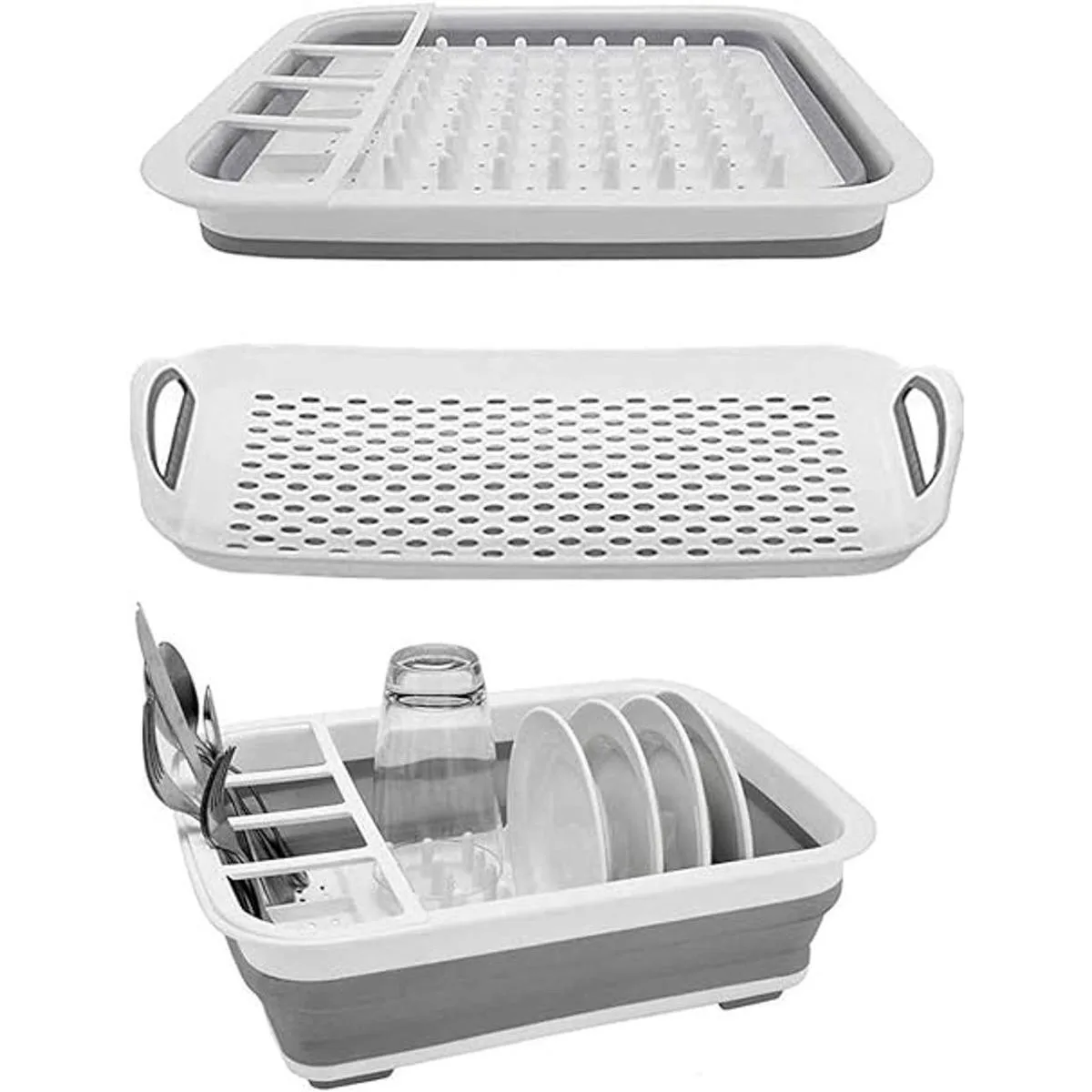 Escurridor de platos compacto y portátil para encimera de cocina plegable: perfecto para almacenar y drenar vajilla y cristalería. Adecuado tanto para uso en interiores como exteriores, como suministros de camping, remolques de viaje, accesorios de RV, marina, barbacoa, limpieza de camping, casas de vacaciones y accesorios de caravana para remolques de viaje, caravanas y campistas