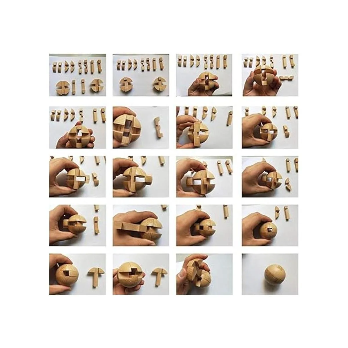 AHYUAN Rompecabezas de madera hecho a mano bola mágica cerebro teeasers juguete inteligencia IQ juegos 3D esfera rompecabezas para niños y adultos