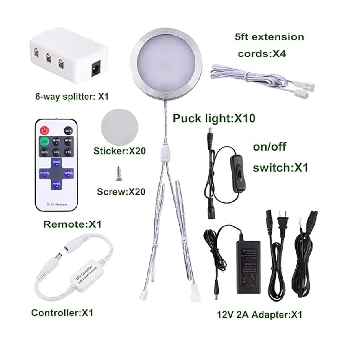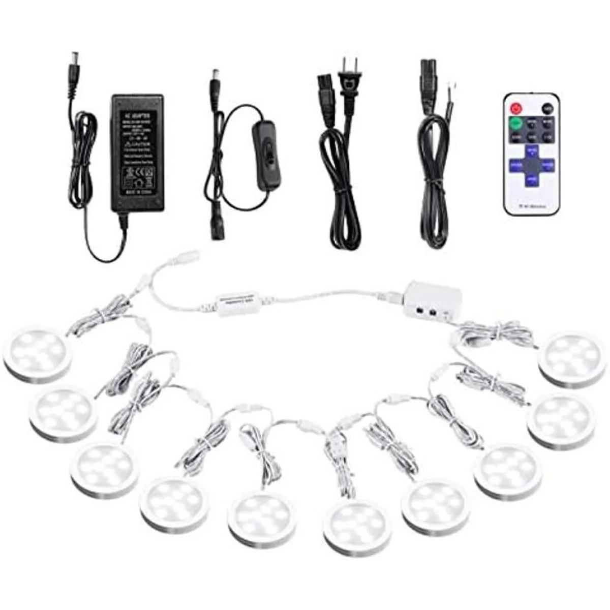 AIBOO Iluminación LED enlazable para debajo del gabinete, luces de disco regulables de 12 V con control remoto inalámbrico RF, cableado y enchufe de pared para iluminación de pantalla 10 luces, luz diurna