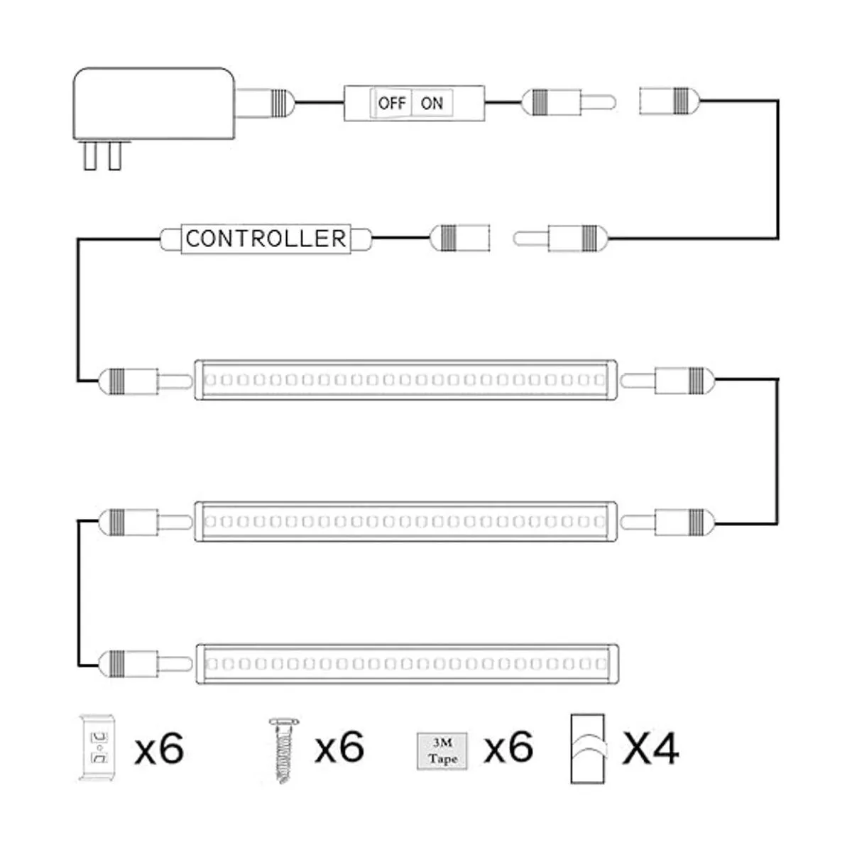 Plug and Play: las barras de luz rígidas debajo del armario son muy fáciles de montar y conectar. También se incluyen cintas y tornillos de doble cara de 2 caras. Si necesitas más clips de cable para ayudarte a instalar las luces, cómpralas por el ASIN: B085DC5F9S.