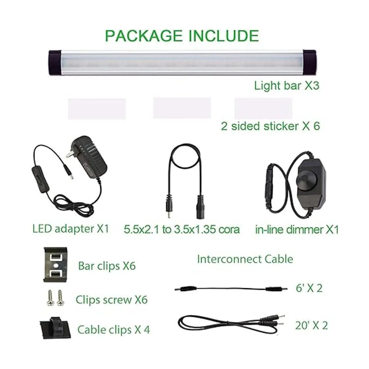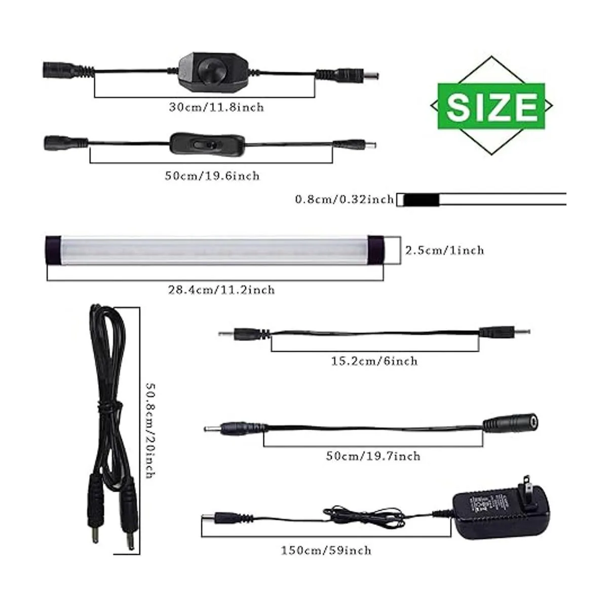 Instalación enlazable: hay 2 tipos de cables de conexión proporcionados para instalar las luces debajo del armario de forma flexible. Un cable es de 5.9 pulgadas, el otro cable es de 20 pulgadas.