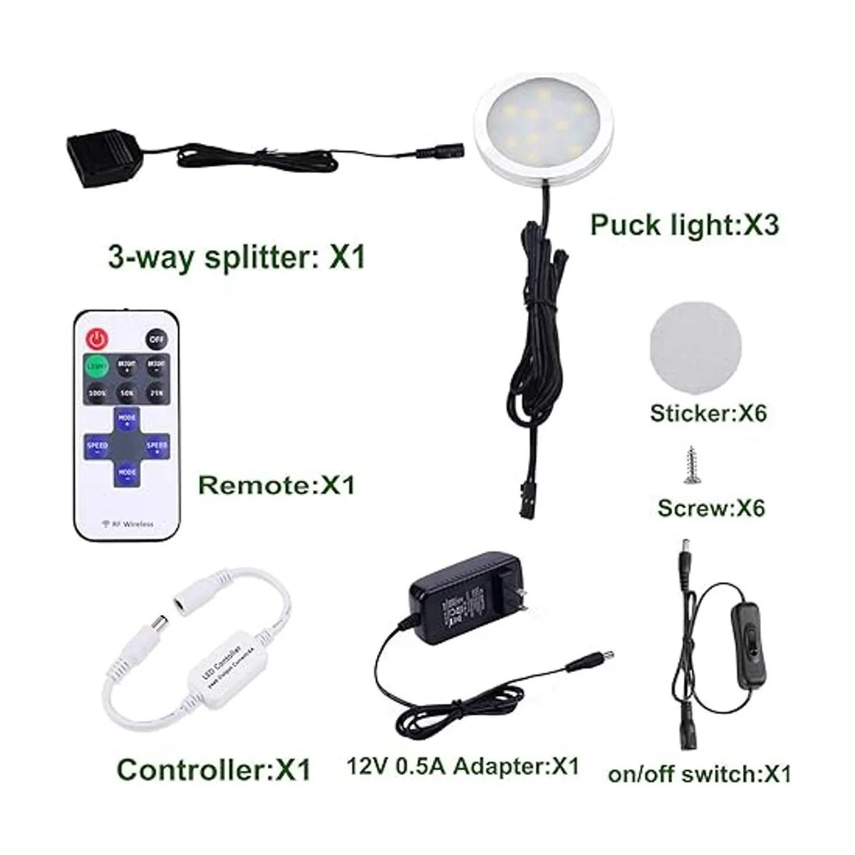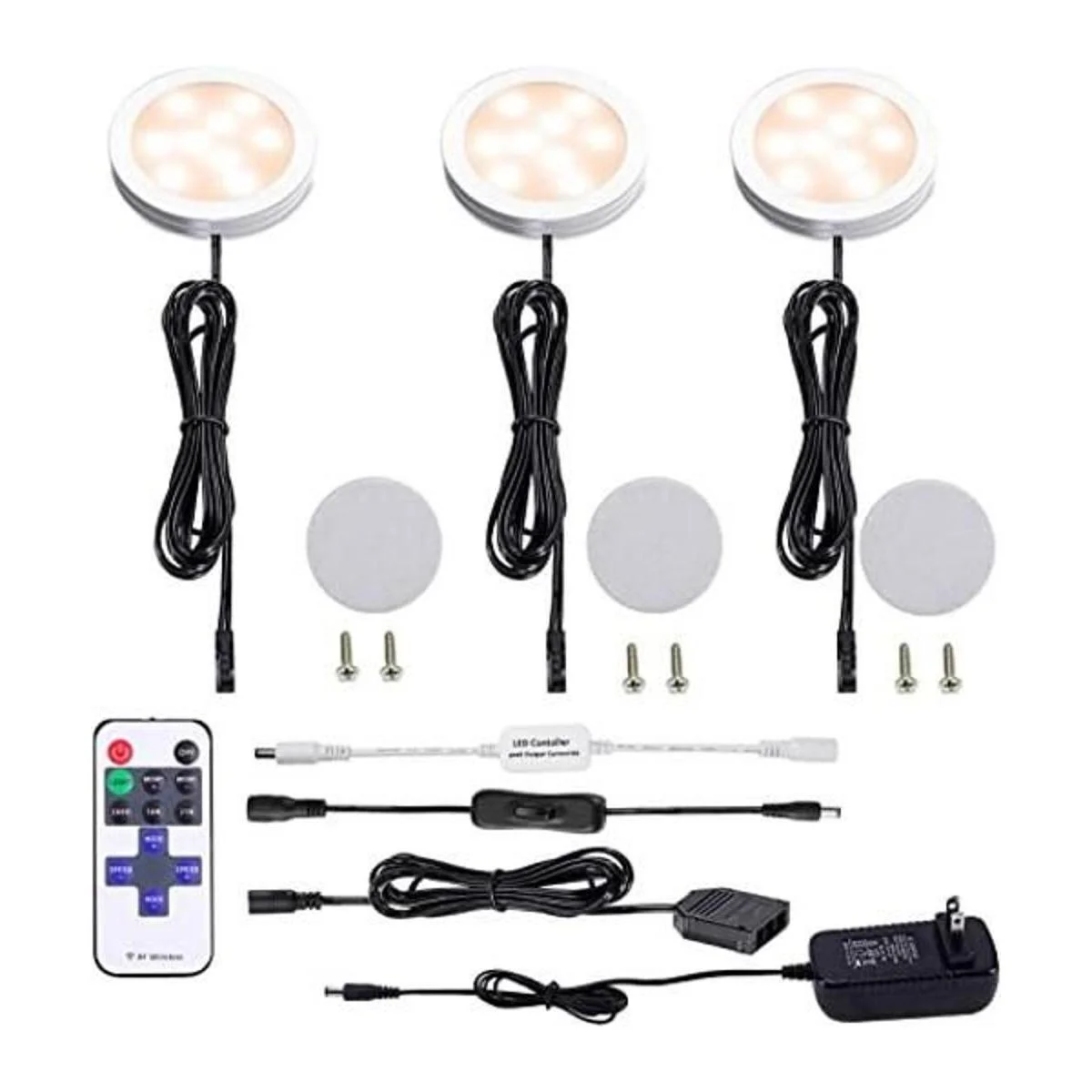 AIBOO Juego de 3 lámparas LED regulables para debajo del gabinete con control remoto RF para iluminación de mostrador de cocina en el hogar blanco cálido 2700 K