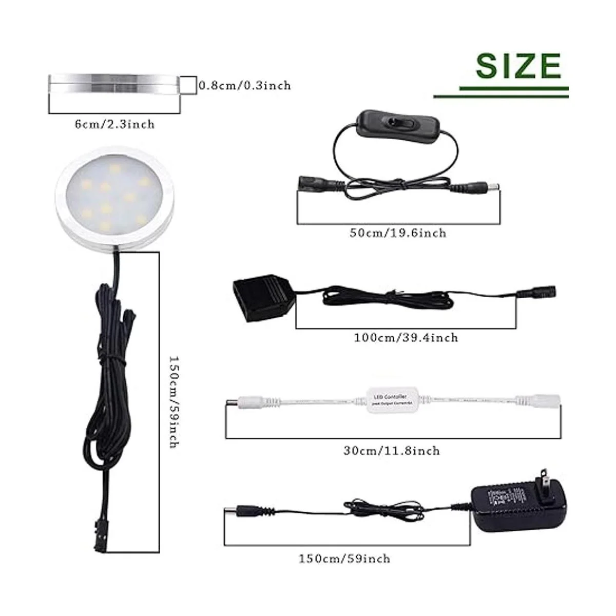 Perfil bajo e invisible: la dimensión de la luz de disco delgada es: Diámetro: 2.3 pulgadas, grosor: 0.31 pulgadas. Si necesitas luces adicionales, cómpralas por el ASIN: B07PRDZ731.