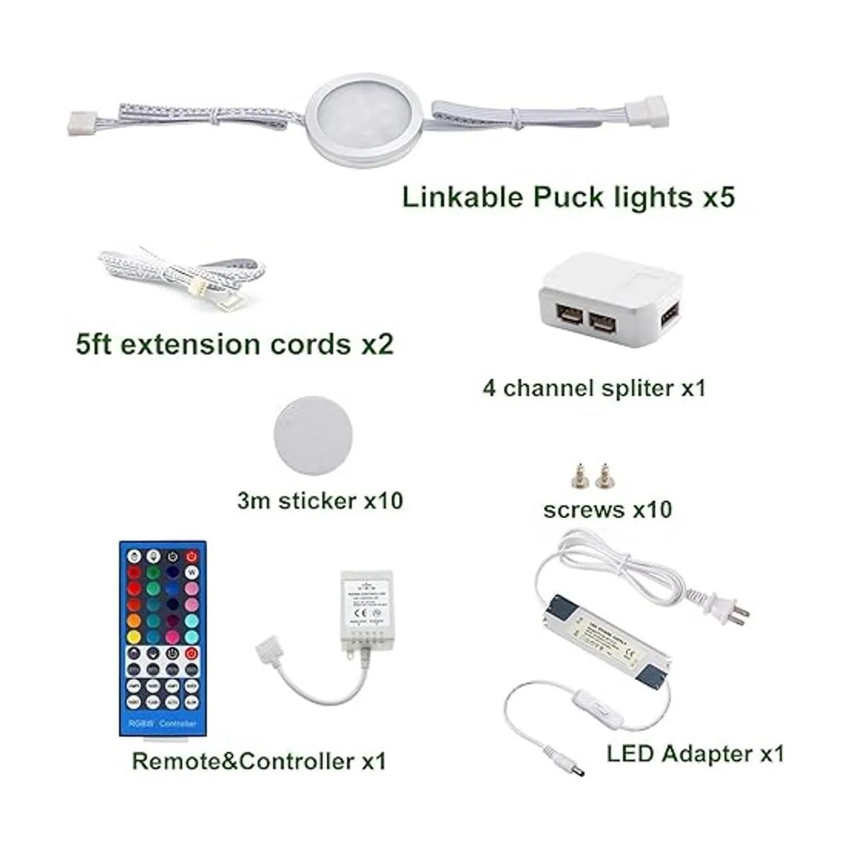AIBOO Juego de luces LED RGBWW regulables de 24 V para debajo del mostrador de cocina, vitrina, estante, iluminación de dormitorio, 5 unidades con mando a distancia IR de 40 teclas RGBWW, 5 paquetes