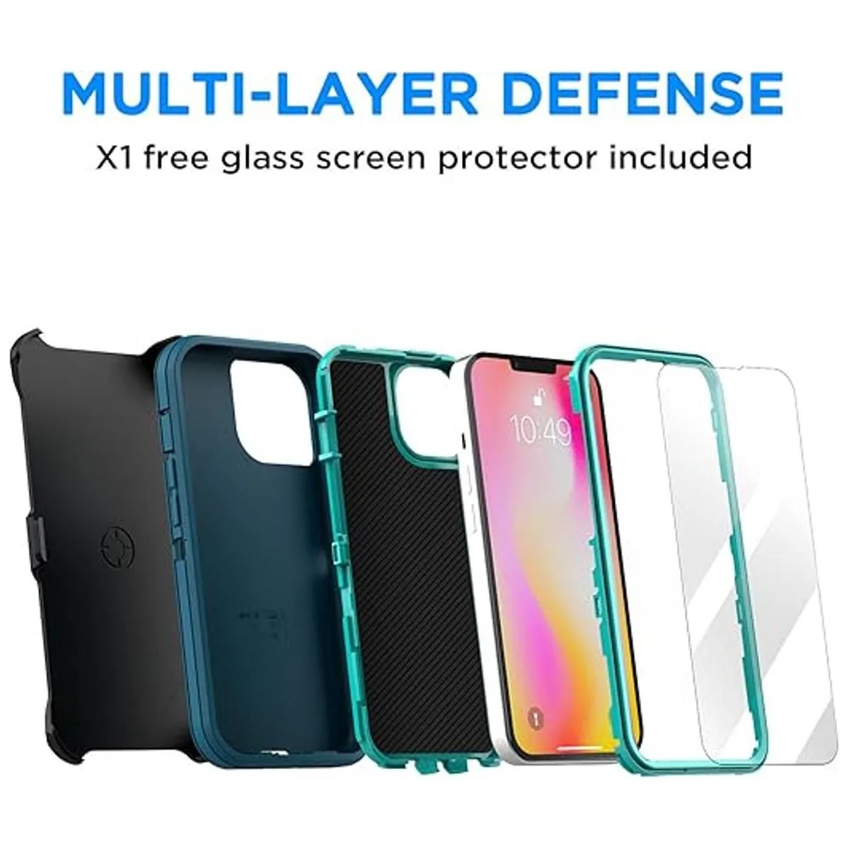 Defensa de varias capas: carcasa interior de policarbonato sólido, cubierta exterior de goma suave, funda incluida que funciona como un clip para cinturón y un soporte manos libres. Combínalo con un protector de pantalla de vidrio AICase bono para una protección total de cuerpo completo de 360 grados para tu iPhone 14 Plus