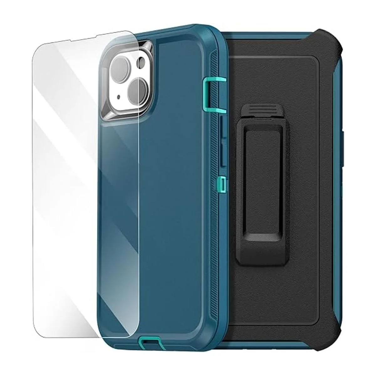 AICase Funda con clip de cinturón para iPhone 14 Plus 6.7 pulgadas con protector de vidrio, protección resistente contra caídas de cuerpo completo, resistente a prueba de golpes, grado militar, resistente para iPhone 14 Plus