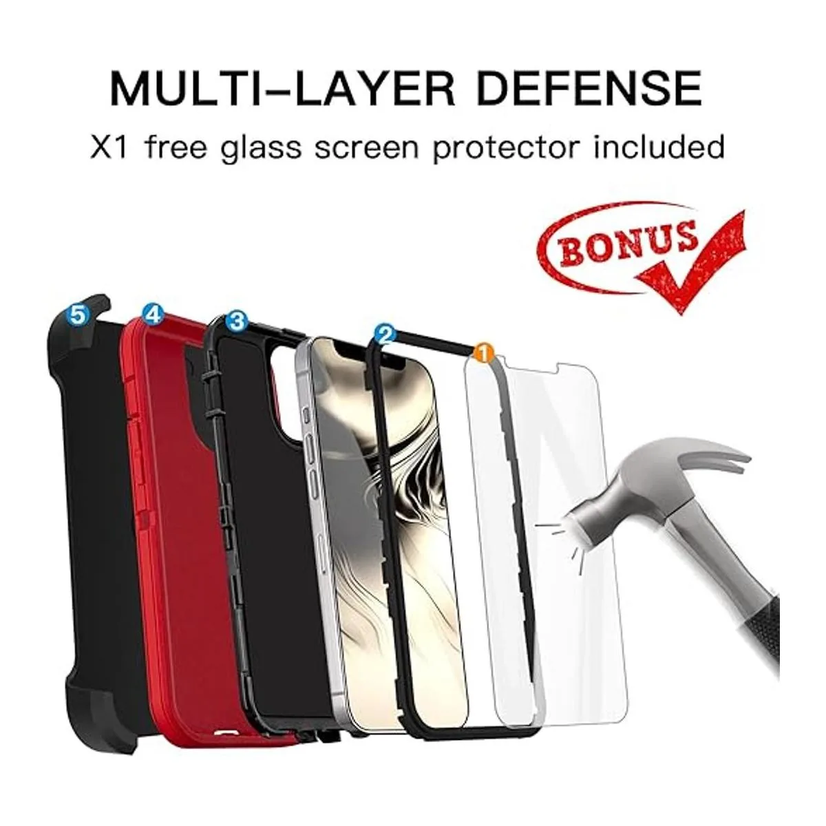 Defensa de múltiples capas: carcasa interior de policarbonato sólido, cubierta exterior de goma suave, funda incluida que funciona como un clip de cinturón y un soporte manos libres. Combínalo con un protector de pantalla de vidrio AICase bono para una protección completa de 360 grados para iPhone 13 Pro