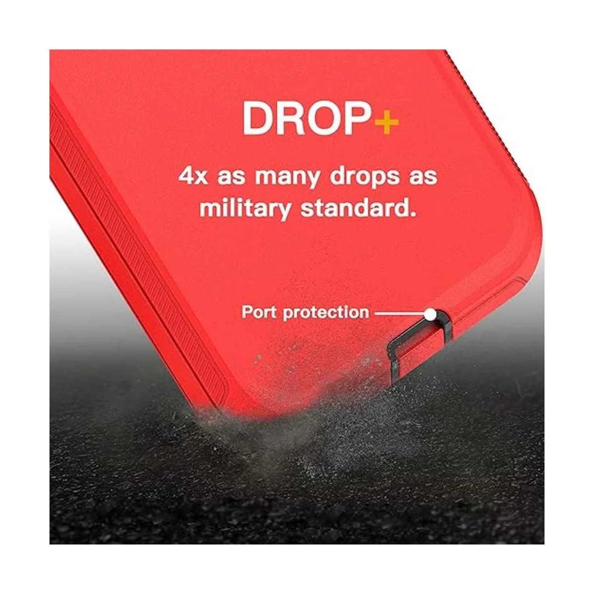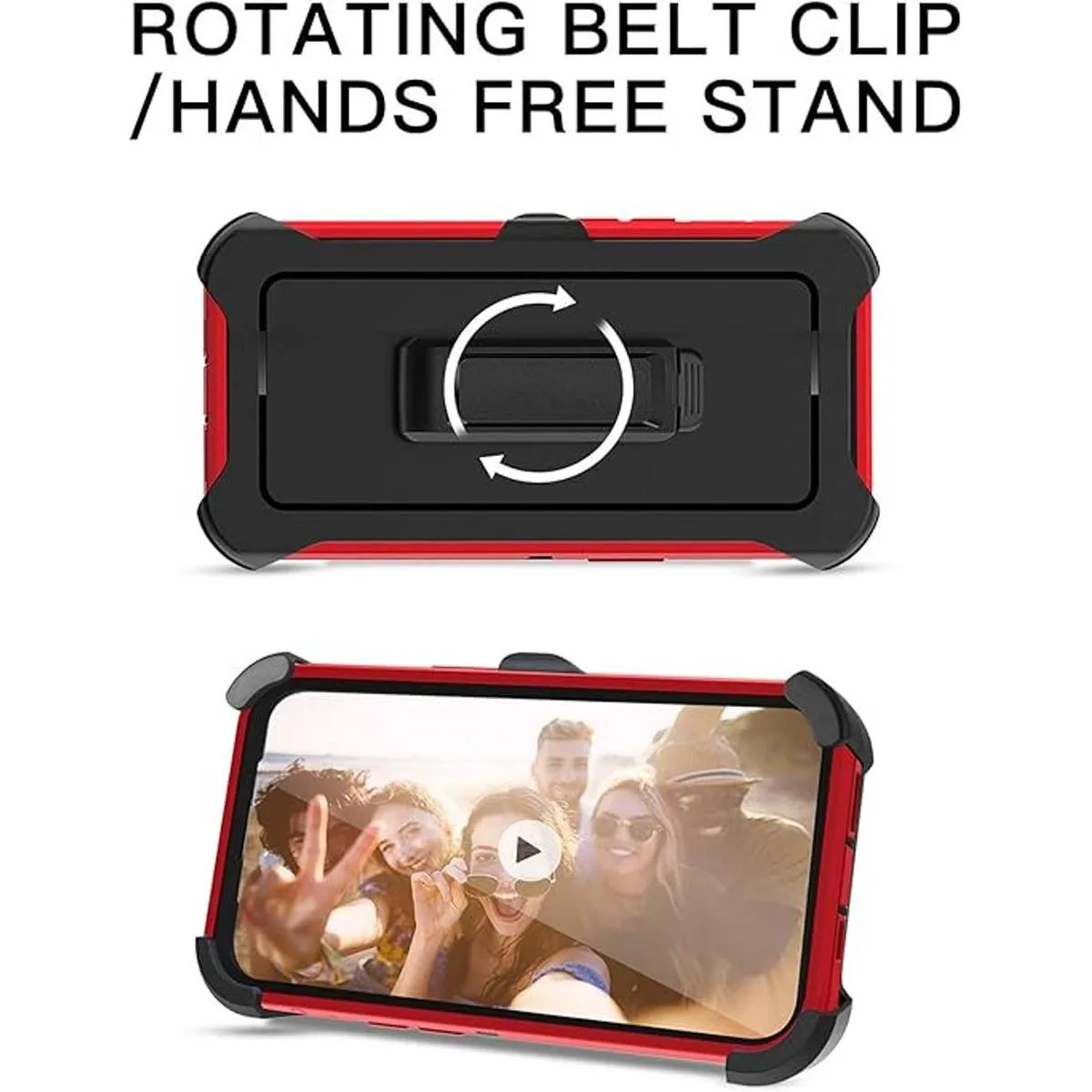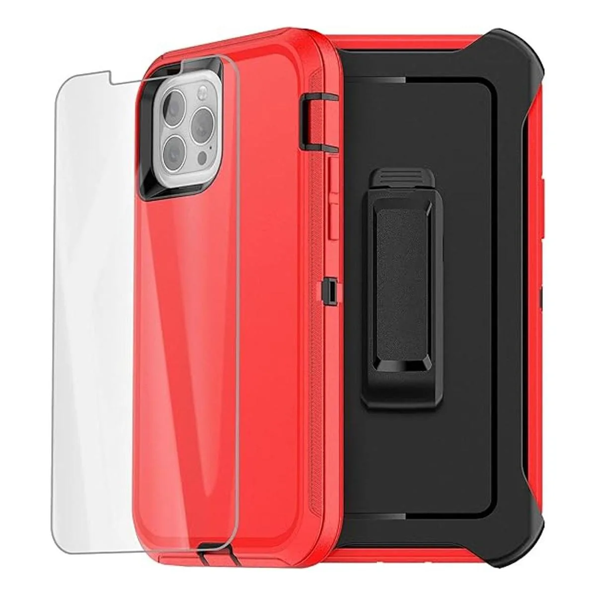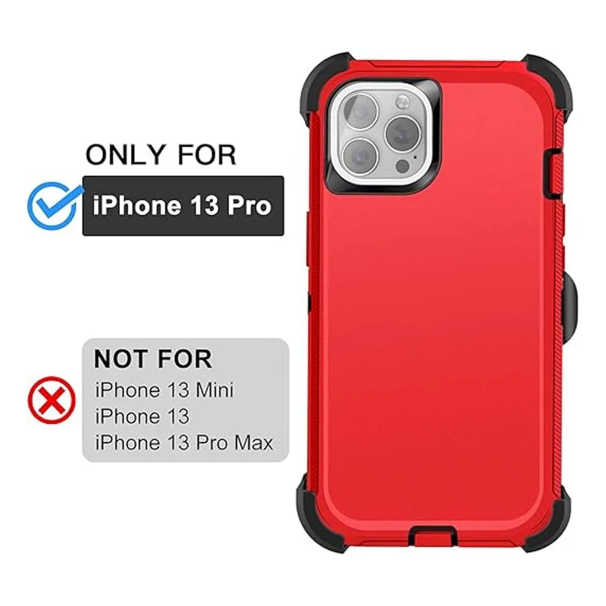 AICase Funda para iPhone 13 Pro con funda de clip para cinturón, protector de pantalla, funda protectora resistente para teléfono celular, protección de cuerpo completo de grado militar, a prueba de golpes, polvo y caídas, resistente rojo