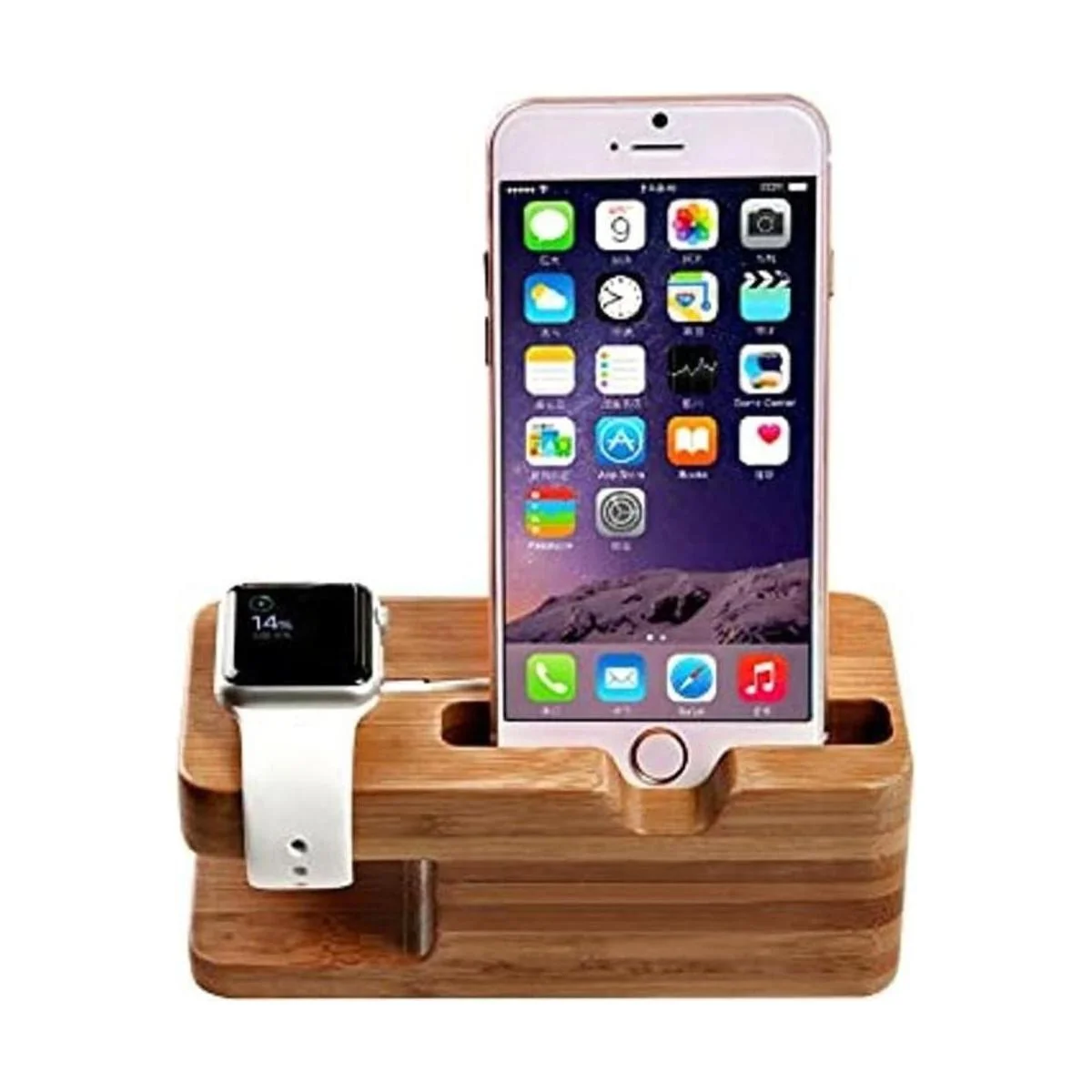AICase Soporte para reloj, iWatch de madera de bambú, soporte para estación de carga para Apple Watch y iPhone X 8 Plus87 Plus 6 6 Plus 5S 5 madera de bambú II