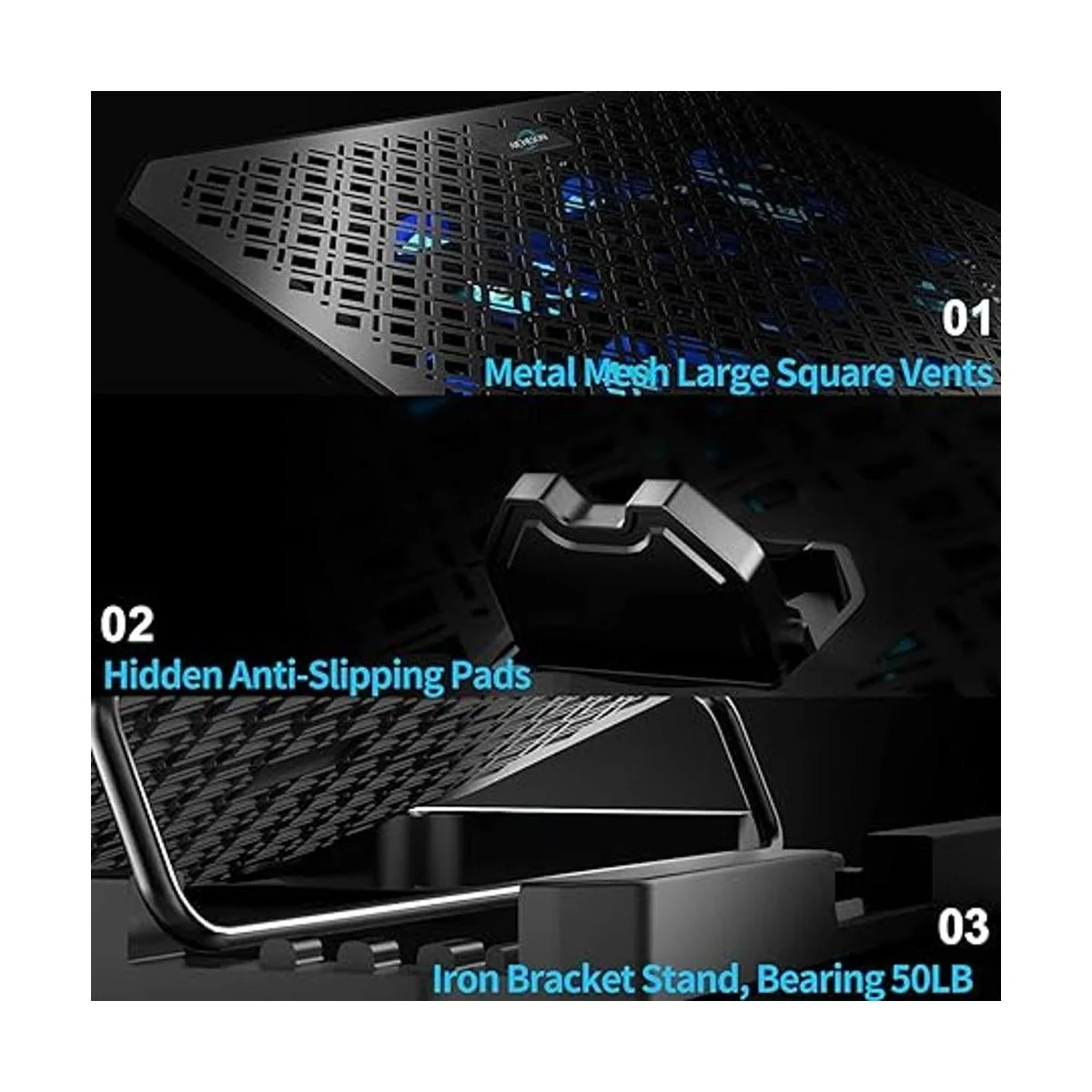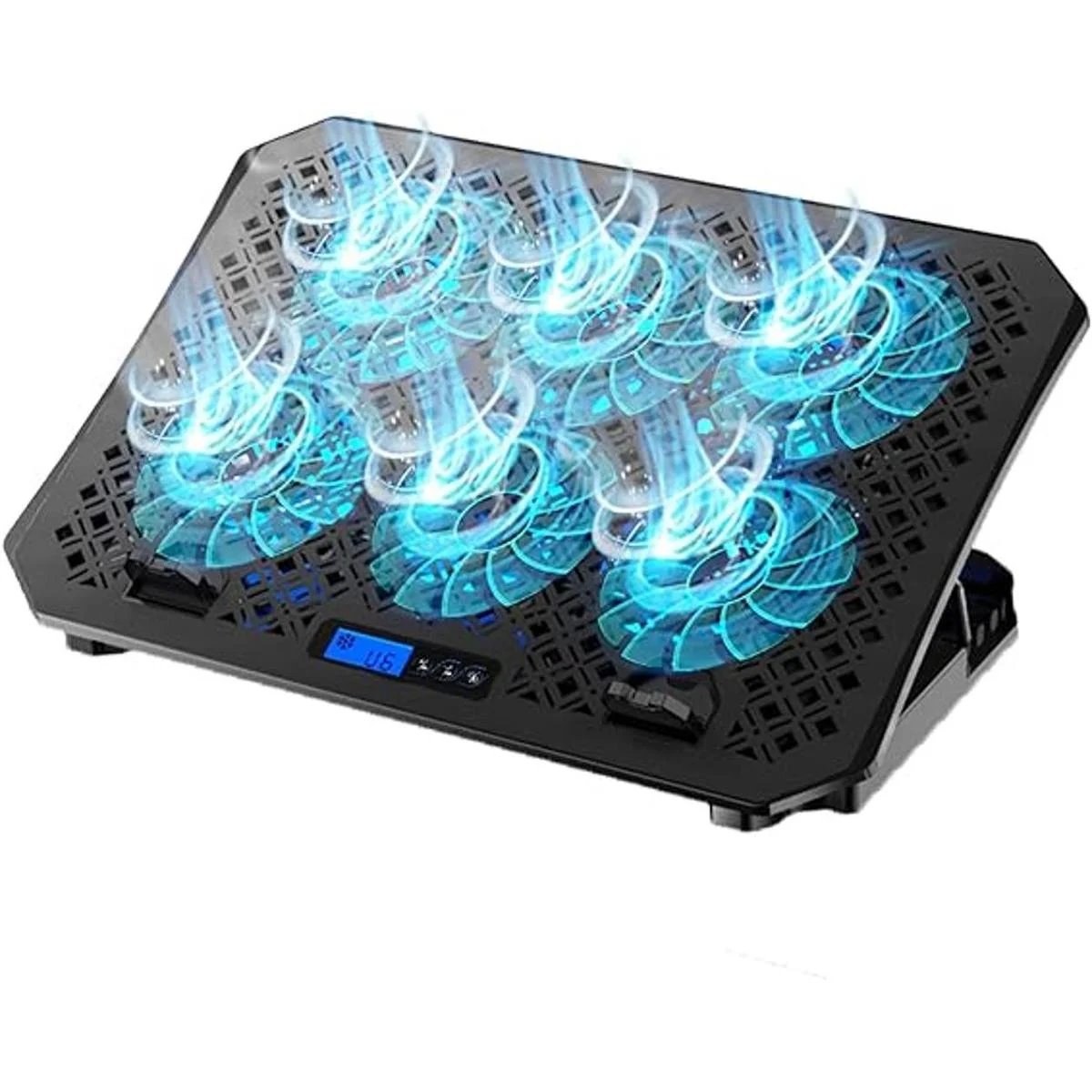AICHESON Almohadilla de refrigeración para portátil con 6 ventiladores con luces azules, pantalla LCD, 2 puertos USB