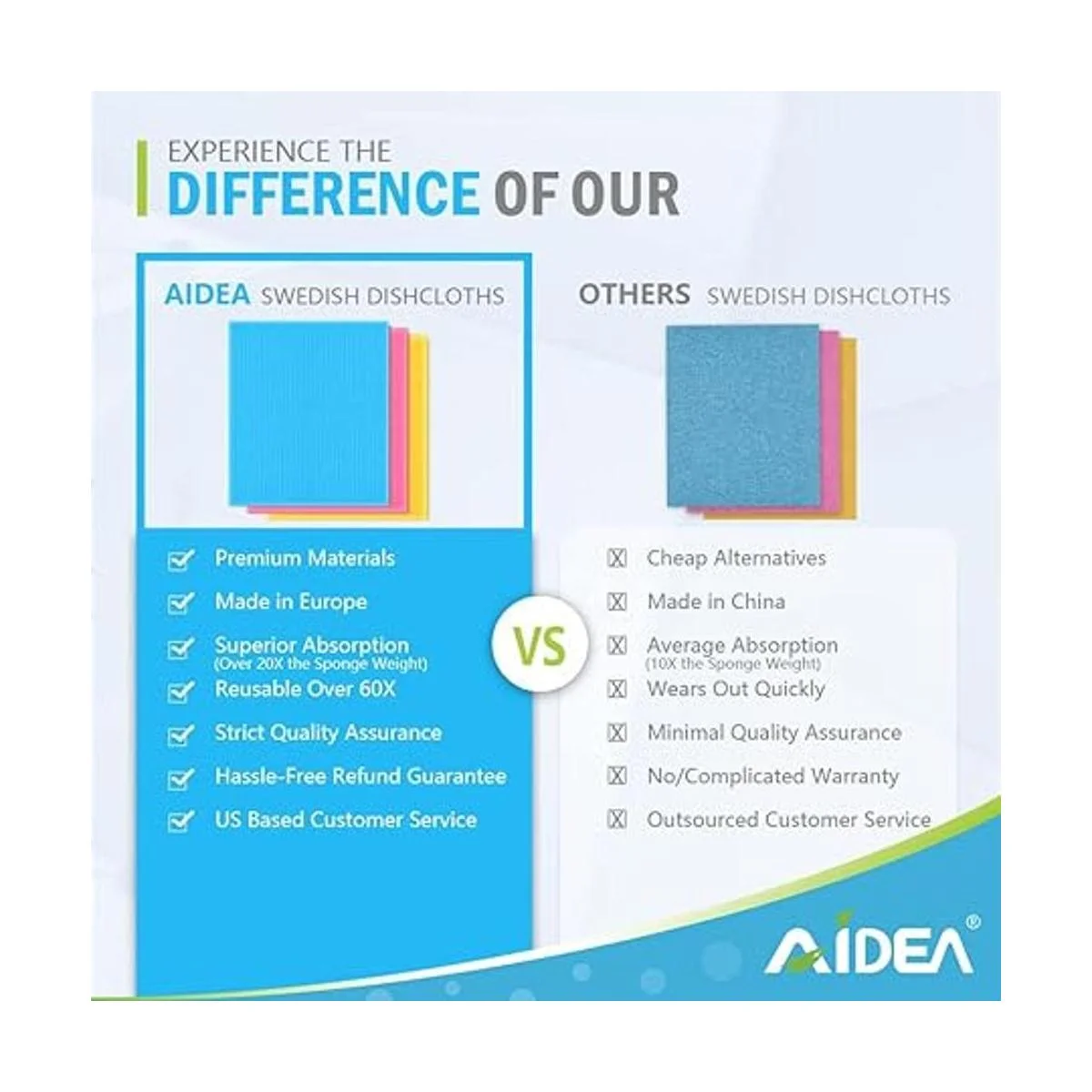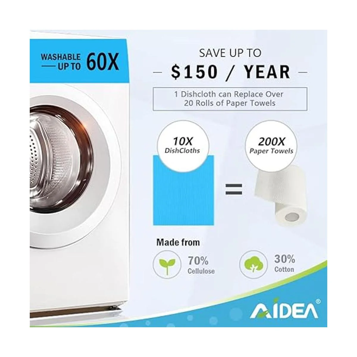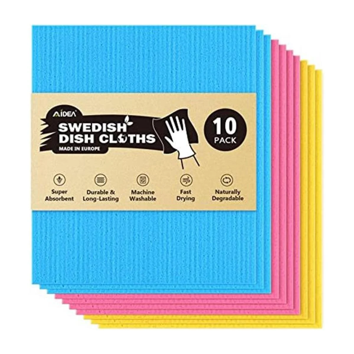 AIDEA Paño sueco, paquete de 10, paños de esponja de celulosa, paño de limpieza reutilizable y absorbente para cocina y trapo, 7 x 9 pulgadas