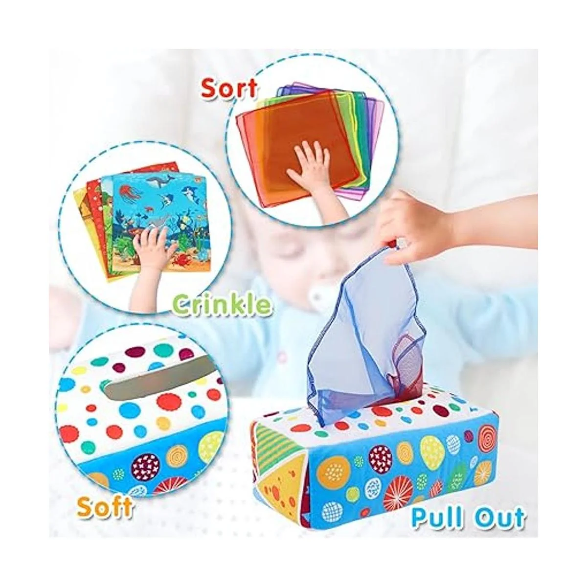 Satisfacción 100: Si algo va mal con los juguetes sensoriales de caja de pañuelos para bebé, por favor ponte en contacto con nosotros inmediatamente, haremos todo lo posible para que sea adecuado para ti Añade el carrito y únete a nuestro juego ahora