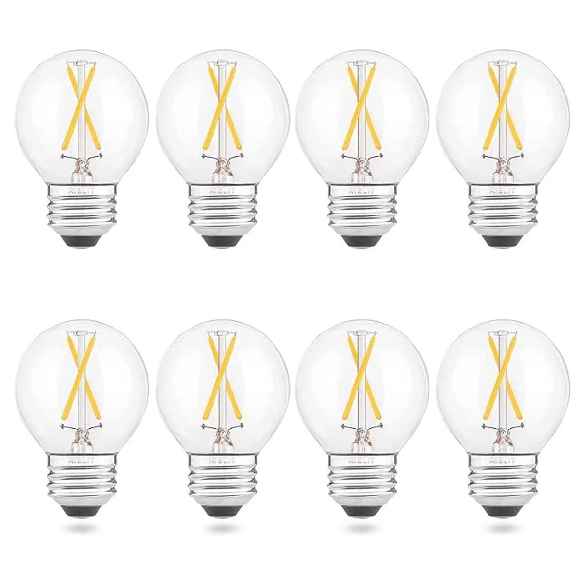 AIELIT Bombilla LED Edison de 2 W equivalente a 25 vatios regulable, luz blanca cálida, 2700 K, vintage A15A50 E26 bombilla LED para lámpara de dormitorio, baño vanidad, mesita de noche, 200 lm, transparente, paquete de 8
