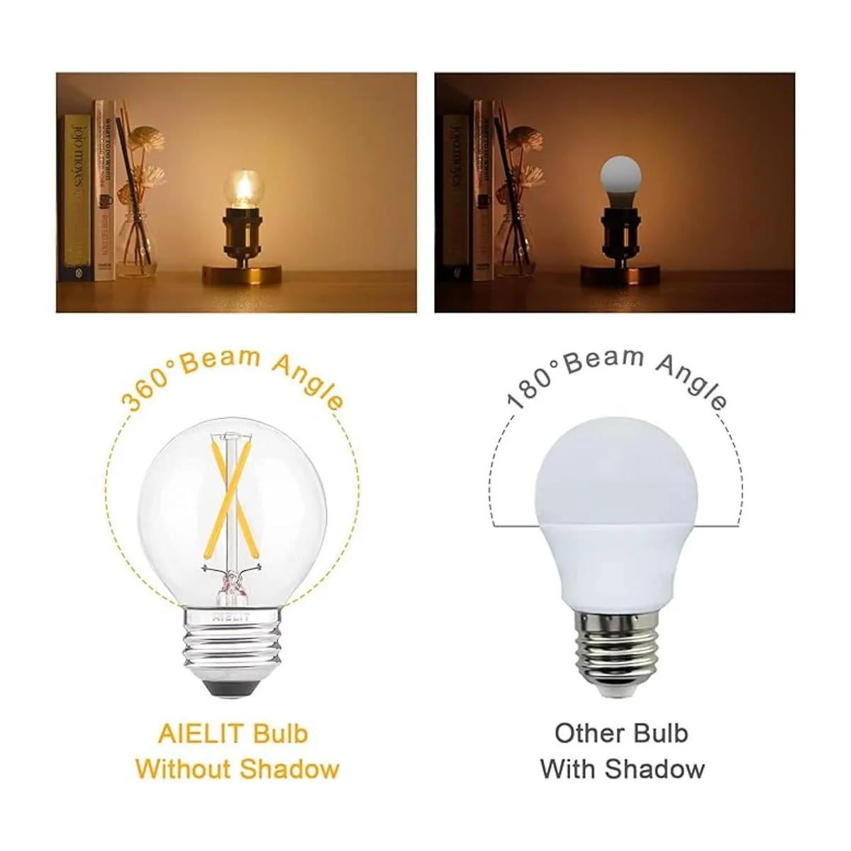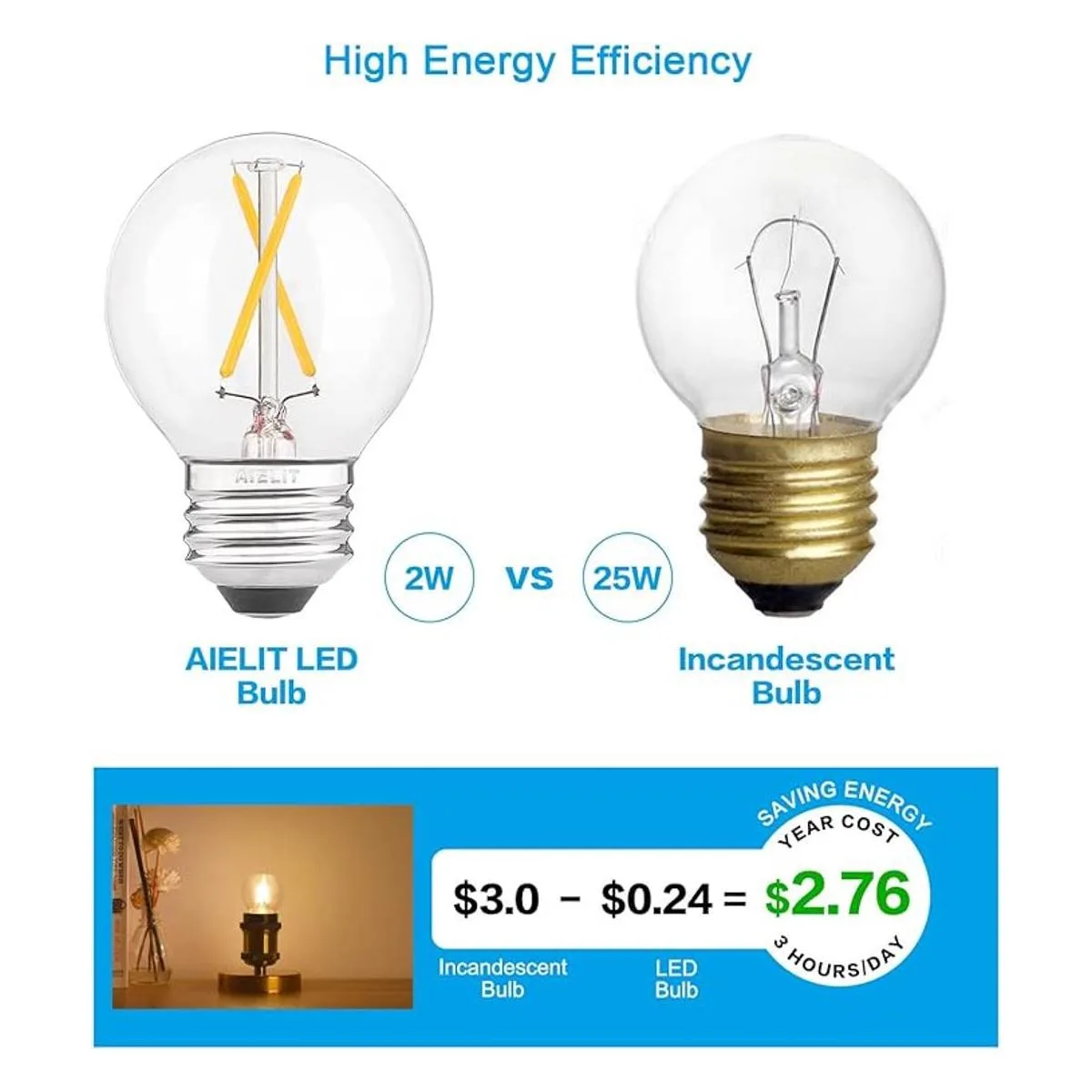 Ahorro de energía: LED de 2 W equivalente a bombilla incandescente de 25 W, más brillante pero alrededor de 1/10 de potencia prácticamente sin calor, disminuye bruscamente tu factura de electricidad costos anuales sólo 0.24. Larga vida útil: la bombilla de filamento LED AIELIT A15 proporciona 25.000 horas de vida útil, resolviendo la molestia de reemplazar las bombillas de araña frecuentes.