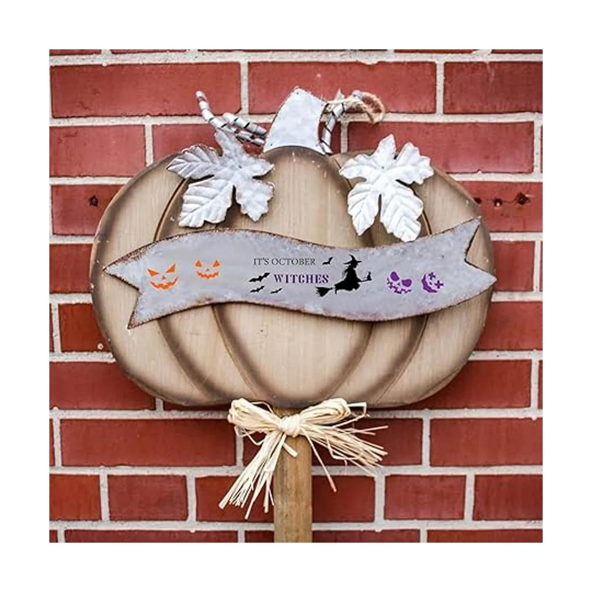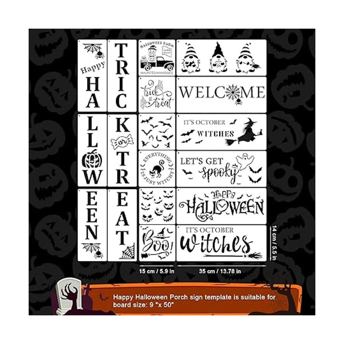 AIEX 18 plantillas de Halloween para pintar sobre madera, reutilizables, de Feliz Halloween, para truco o trato, plantillas de bienvenida para porche, calabaza, fantasma, murciélago, bruja para decoración del hogar