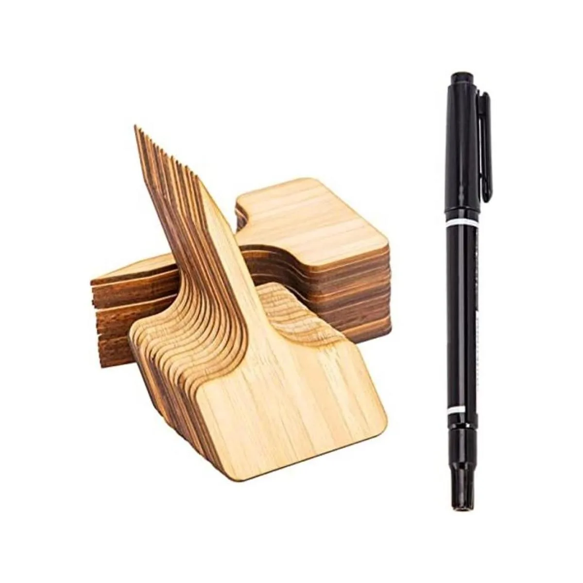 AIEX 30 etiquetas de bambú para plantas de plantas de madera tipo T marcadores para plantas de jardín (3.9 x 2.4 pulgadas)