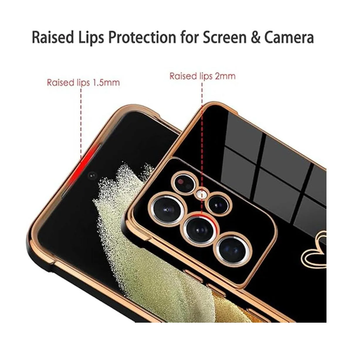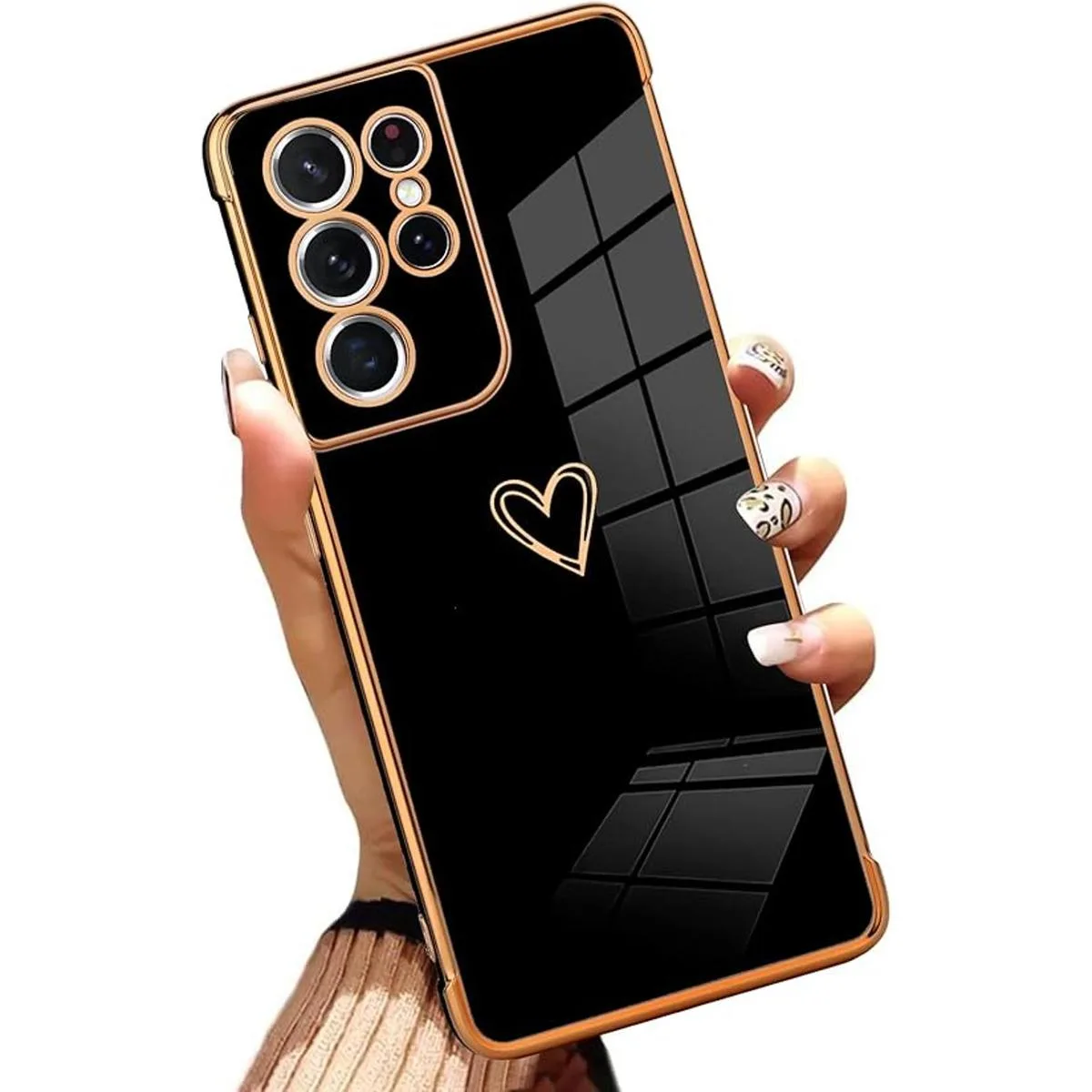 AIGOMARA Funda compatible con Samsung Galaxy S21 Ultra con diseño de corazón, cubierta negra de cuerpo completo, protección a prueba de golpes, antiarañazos, TPU suave, delgada, funda de carga inalámbrica para Galaxy S21 Ultra, color negro