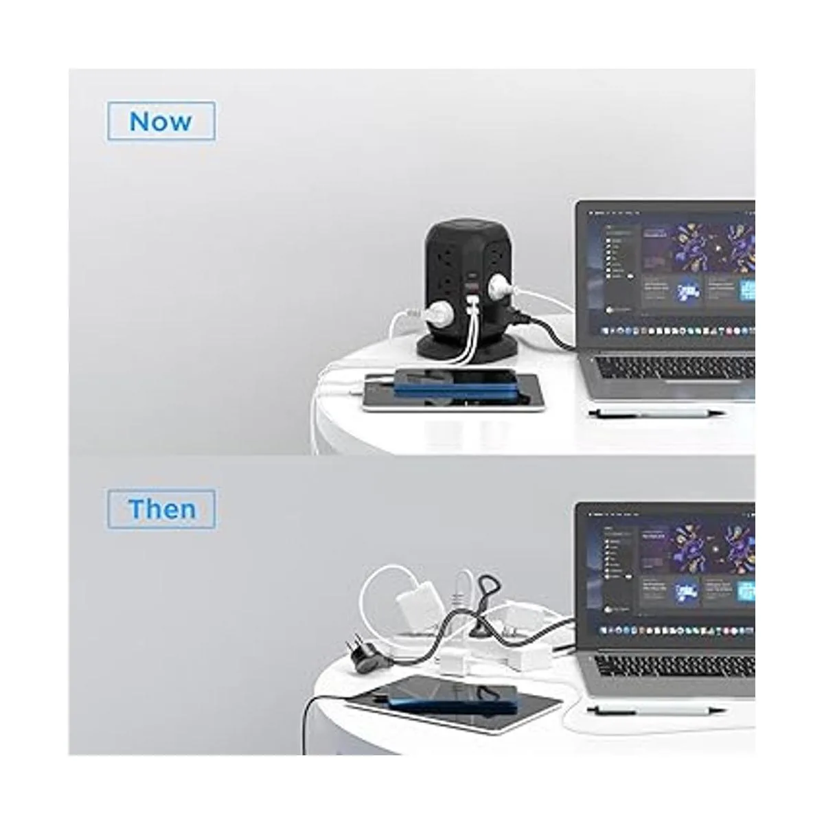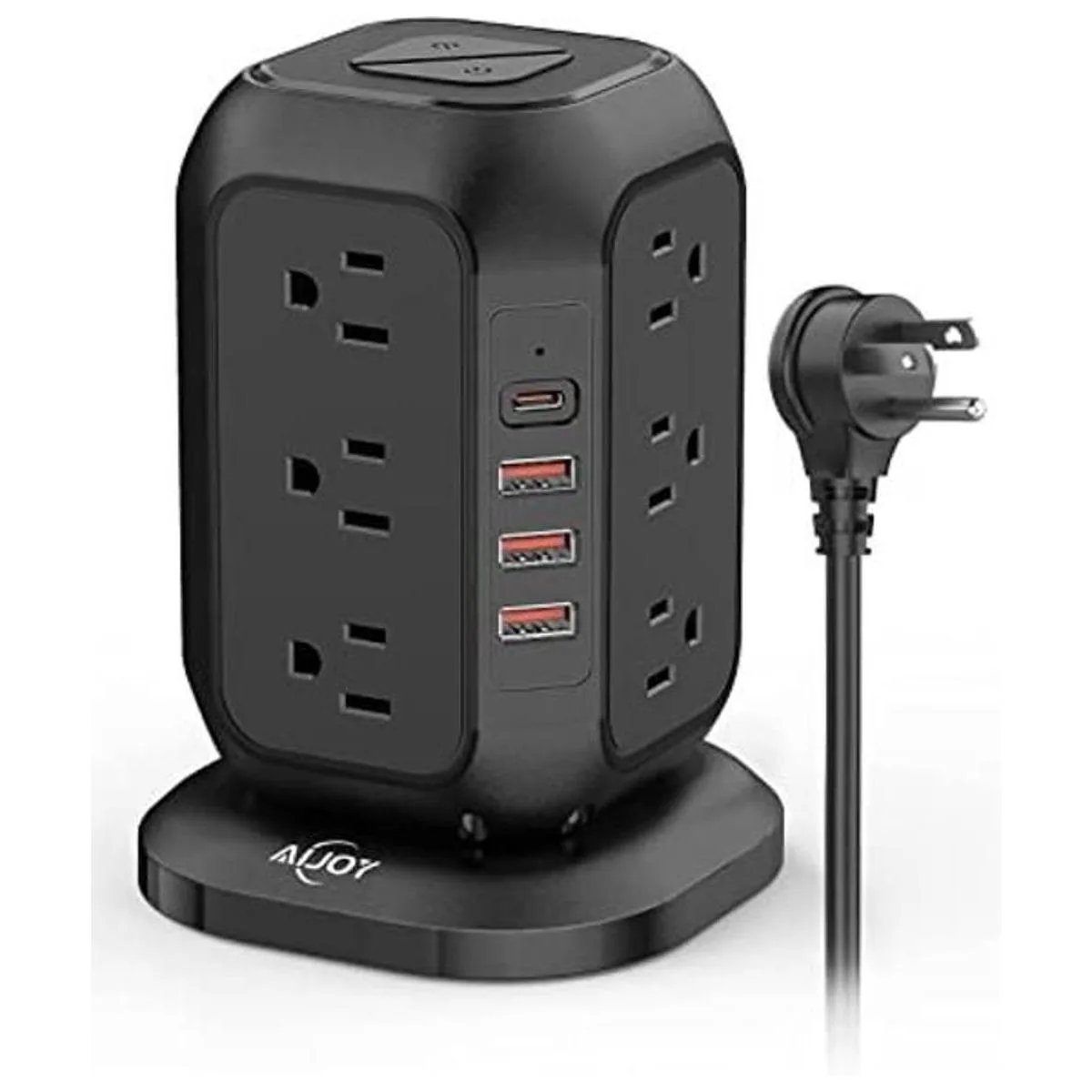 Cable de extensión de 10 pies y construcción estable: el cable de extensión protector de sobretensiones de energía de 10 pies de largo puede darte más libertad de cable en espacios pequeños. La regleta con puertos USB está muy sólida, lo que inspira confianza en la seguridad de la unidad. El diseño vertical de esta torre de regleta es mucho mejor que una tira horizontal tradicional para las fuentes de alimentación relativamente grandes que necesitas para conectar.
