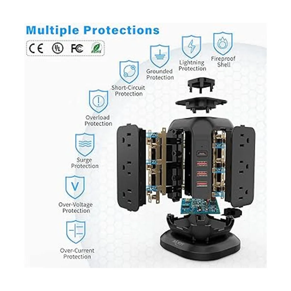 Potencia tu seguridad: el protector de sobretensiones de regleta ha pasado la certificación FCC, RoHS, esta torre de sobretensiones tiene protección contra sobretensiones, protección contra sobrecarga, protección contra cortocircuitos, protección contra rayos. La estación de carga de torre de alimentación utiliza el SPD de cerámica para cortar automáticamente la energía rápidamente cuando se detecta sobretensión de voltaje, para garantizar un entorno de carga seguro. La torre de alimentación tiene un botón de reinicio, en caso de que se exceda el voltaje máximo y la unidad se apague.