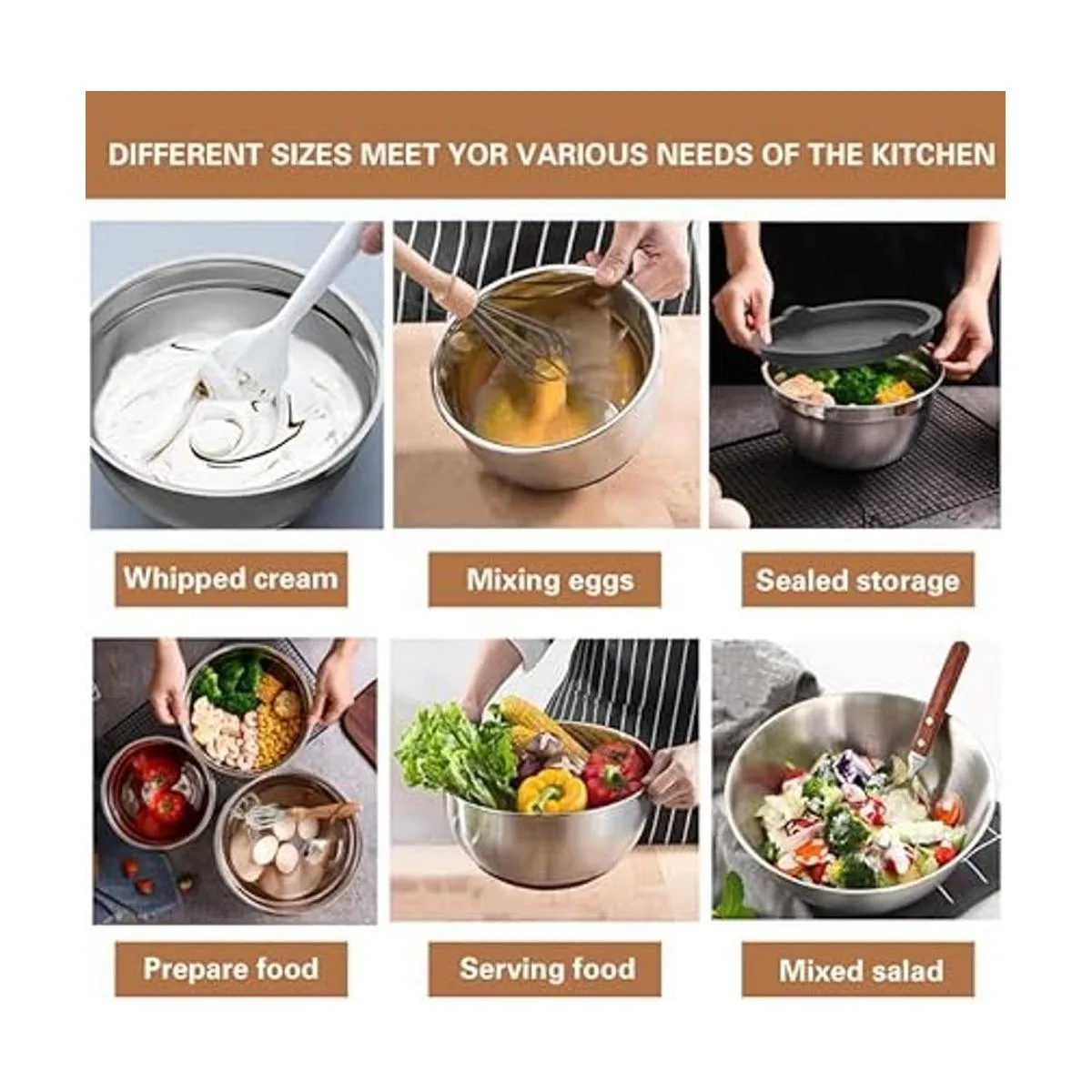 Tapas no deformadas y ajustadas: a diferencia de otros cuencos de mezcla en el mercado, nuestras tapas herméticas no se deforman ni se deforman, se ajustan estrechamente a los cuencos, mantienen tu comida fresca, las tapas ajustadas son ideales para el almacenamiento de alimentos, gran opción para almacenar alimentos durante más tiempo
