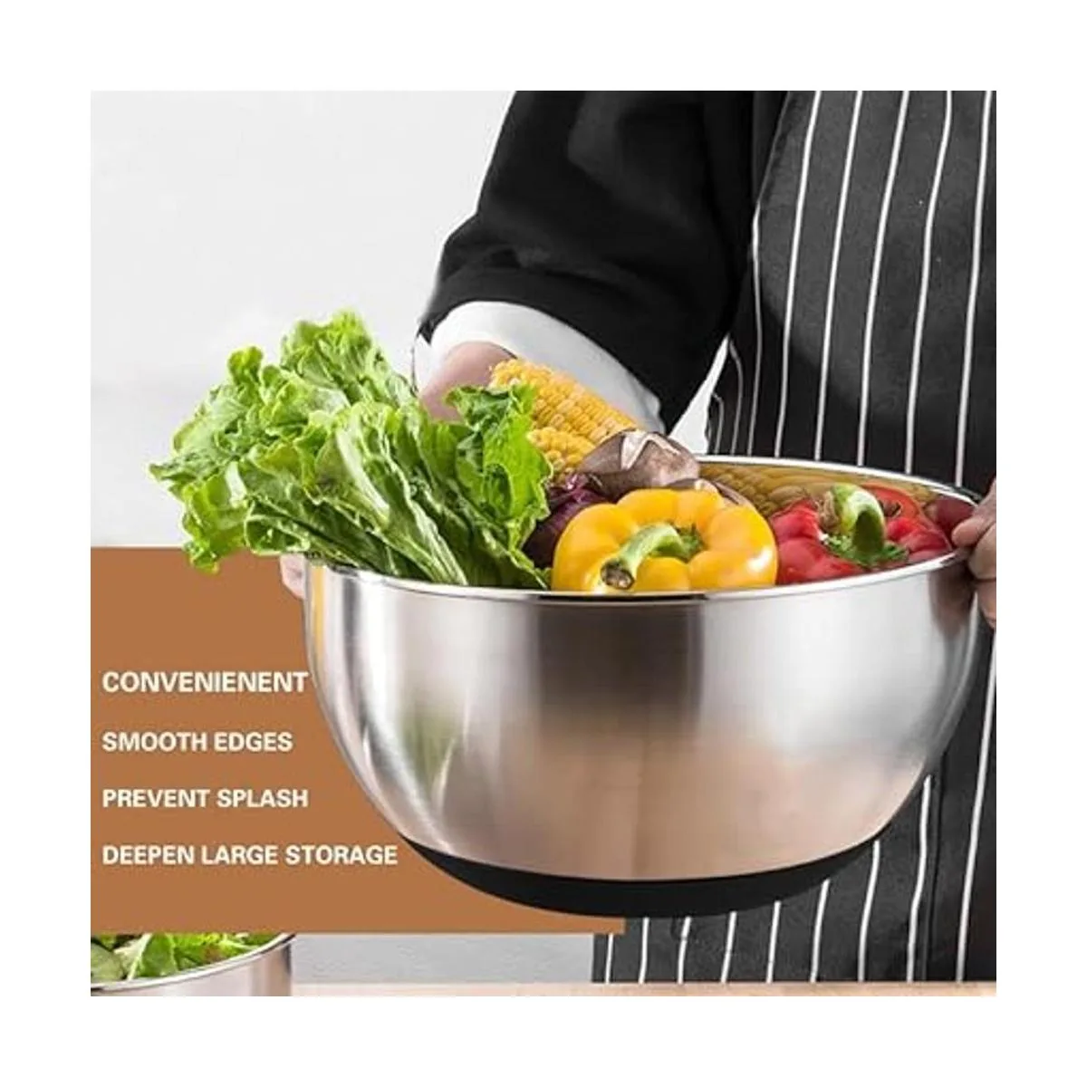 Acero inoxidable duradero y de alta calidad: el juego de cuencos AIKKIL está fabricado con interior de acabado espejo y exterior de acabado mate a prueba de huellas dactilares, que es duradero y resistente al óxido. Acero inoxidable de alta calidad de grado alimenticio a prueba de huellas dactilares que nunca retiene ningún olor. El borde grueso del cuenco hace que sea más fácil de sostener. Aspecto elegante y diseño práctico que será tu gran ayudante en la cocina