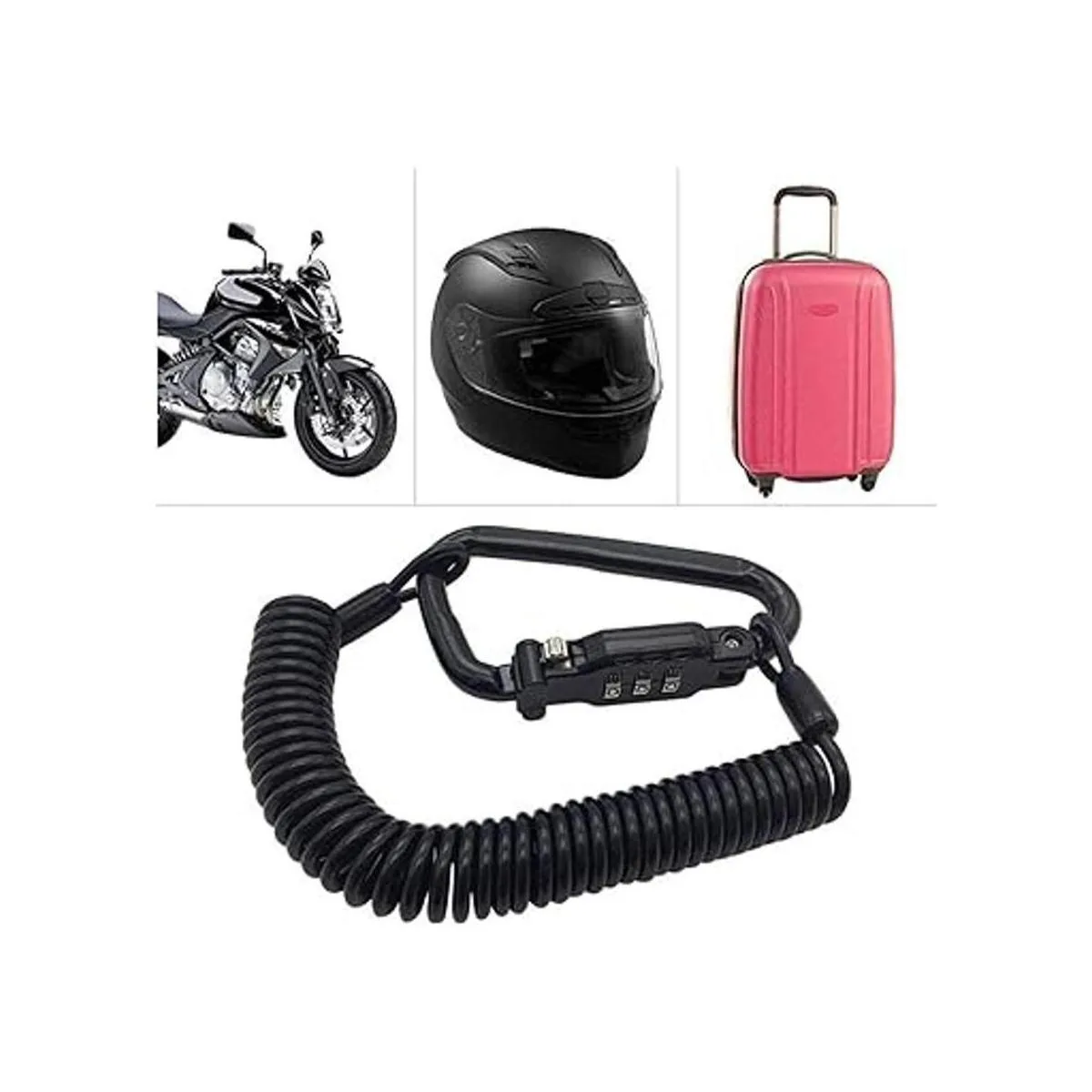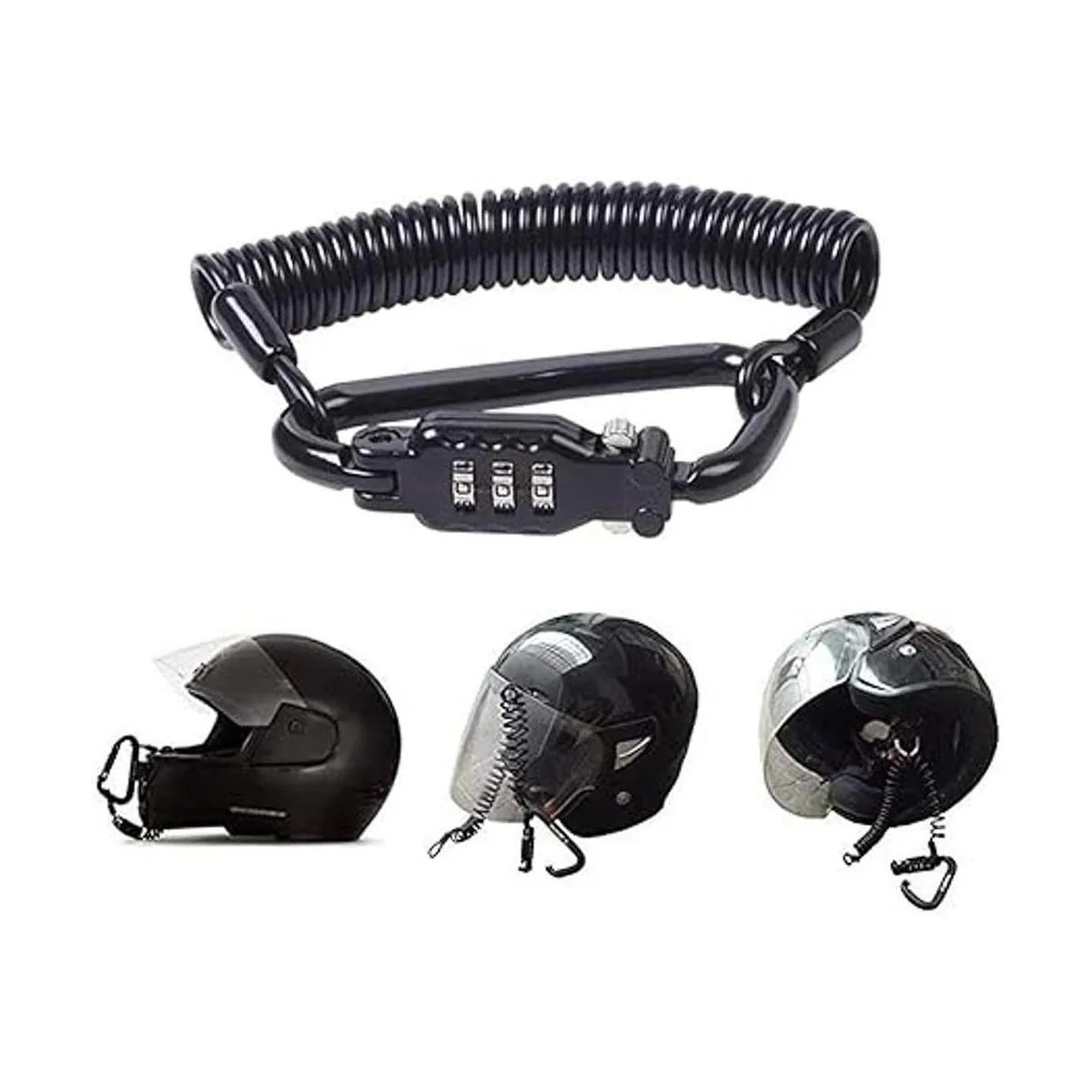 Secure Tough Highquality metallic carabiner combination PIN lock, it can give you an excellent layer of protection against helmet theft it acts as a Visual Deterrent AND a Physical Barrier against thieves