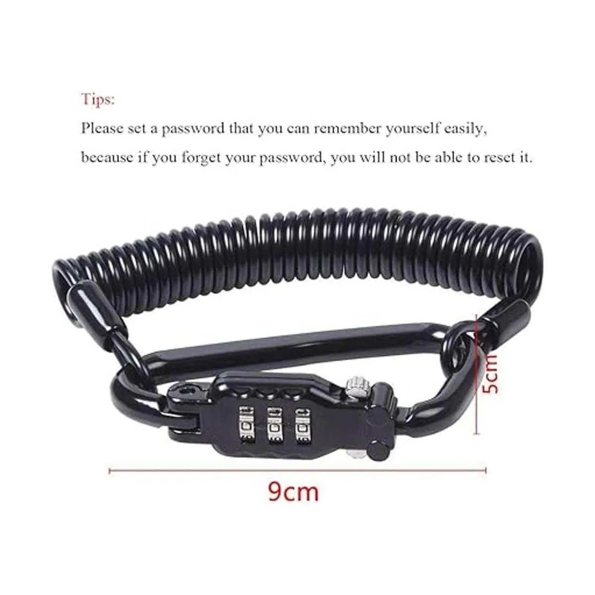 Ailelan Motorcycle Helmet Lock Cable, Sleek Black Tough Combination PIN Locking Carabiner Device for Bike Helmet, Jacket, Cabinets Luggage