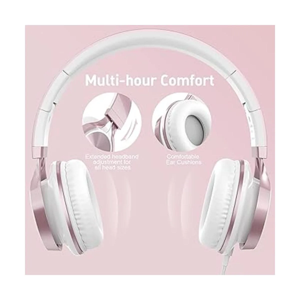 AILIHEN MS300 Auriculares con cable plegables, para iOS, Android, smartphone, laptop, tablet, computadora Rose gold