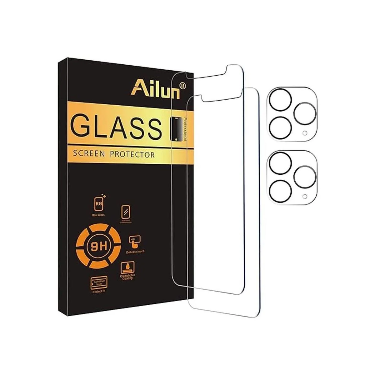 Ailun Paquete de 2 protectores de pantalla para iPhone 11 Pro Max 6.5 pulgadas 2 protectores de lente de cámara, película de vidrio templado, dureza 9H, HD