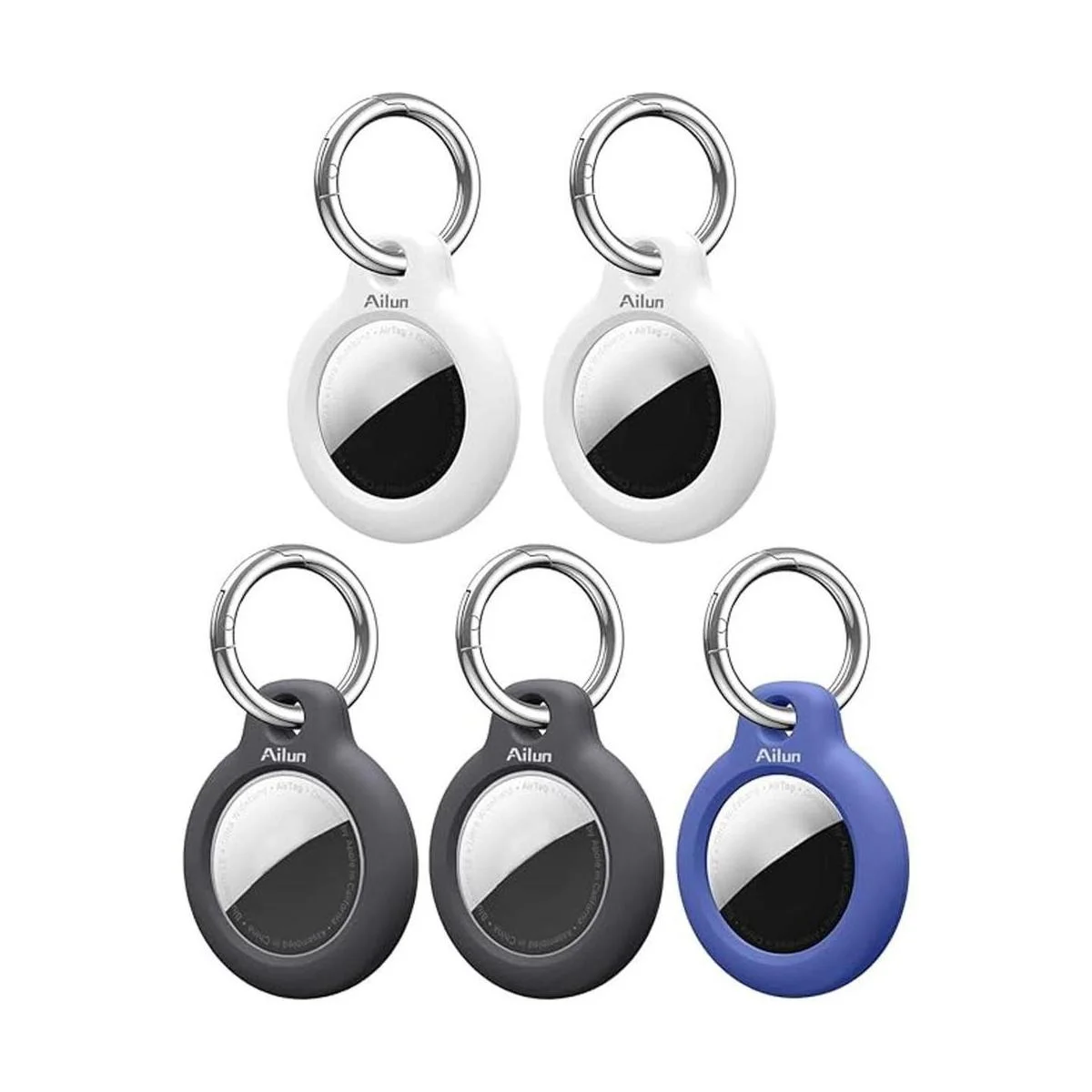 Ailun Paquete de 5 Funda rígida de policarbonato para AirTag, cubierta a prueba de golpes con soporte para anillo de llavero, protector de piel, localizador de rastreador, protector antipérdida para AirTags, resistente al desgaste