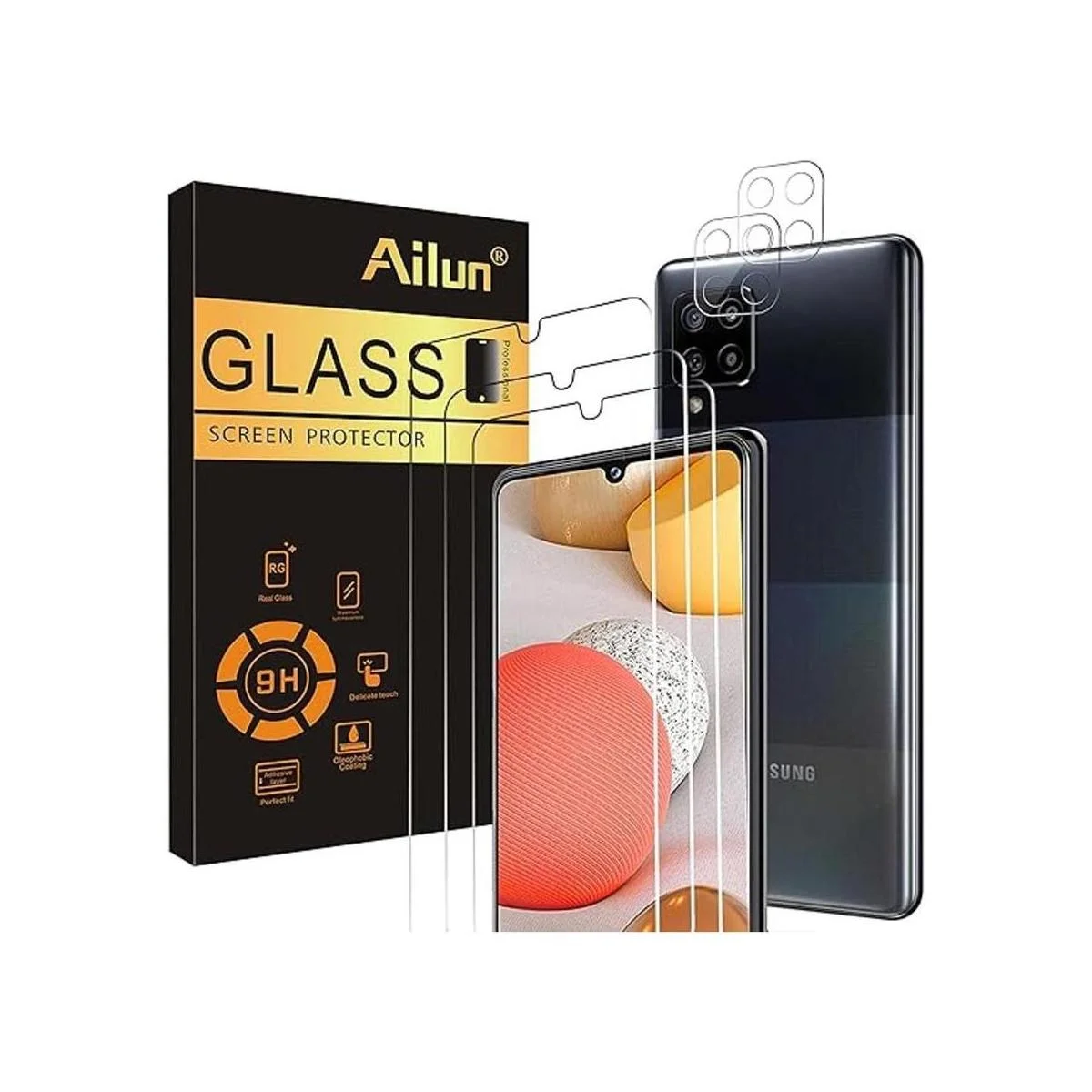 Ailun Protector de pantalla de cristal para Galaxy A42 5G paquete de 3 2 unidades de lente de cámara de vidrio templado desbloqueo compatible 0.013 in ultra transparente antiarañazos caso amistoso