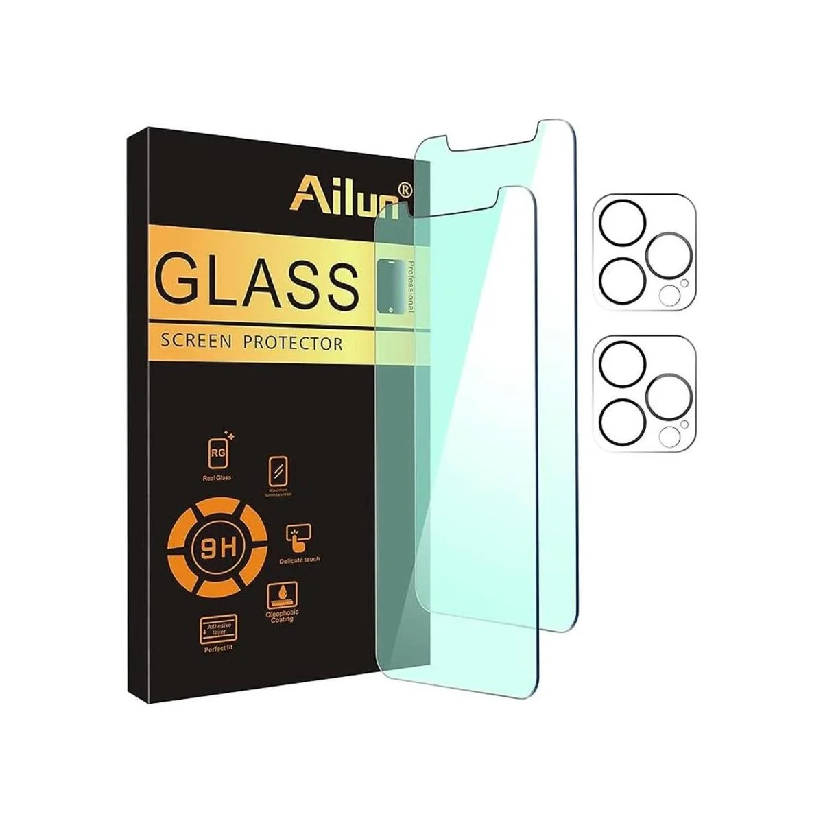 Ailun Protector de pantalla para iPhone 12 Pro Max, 2 unidades 6.7 pulgadas 2 protectores de lente de cámara, película de vidrio templado compatible con fundas, dureza 9H, HD