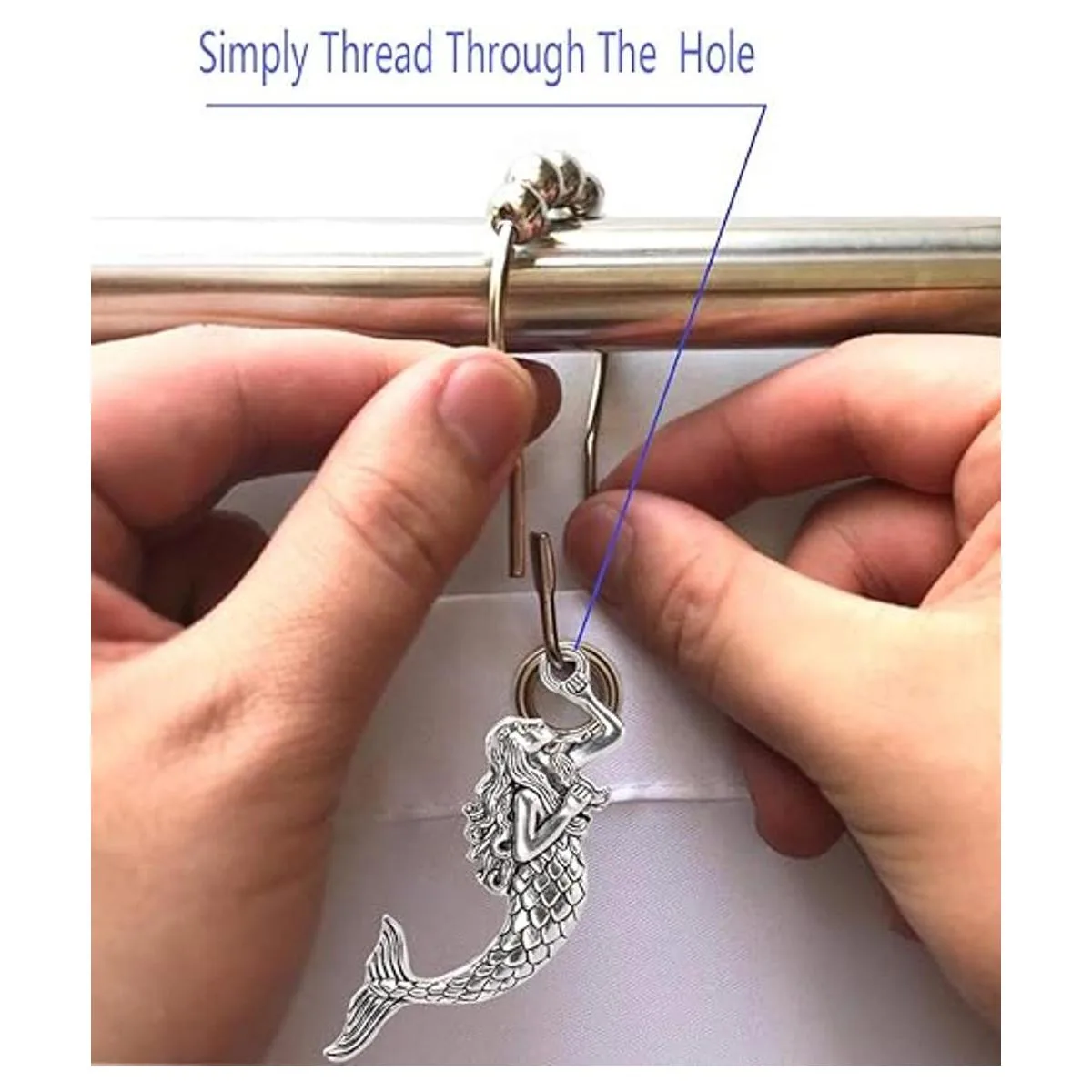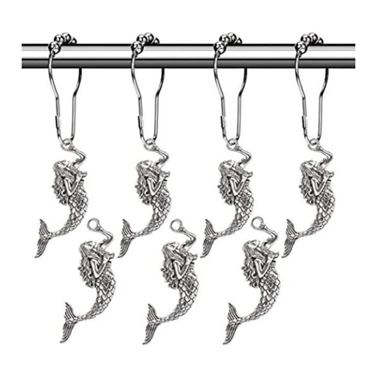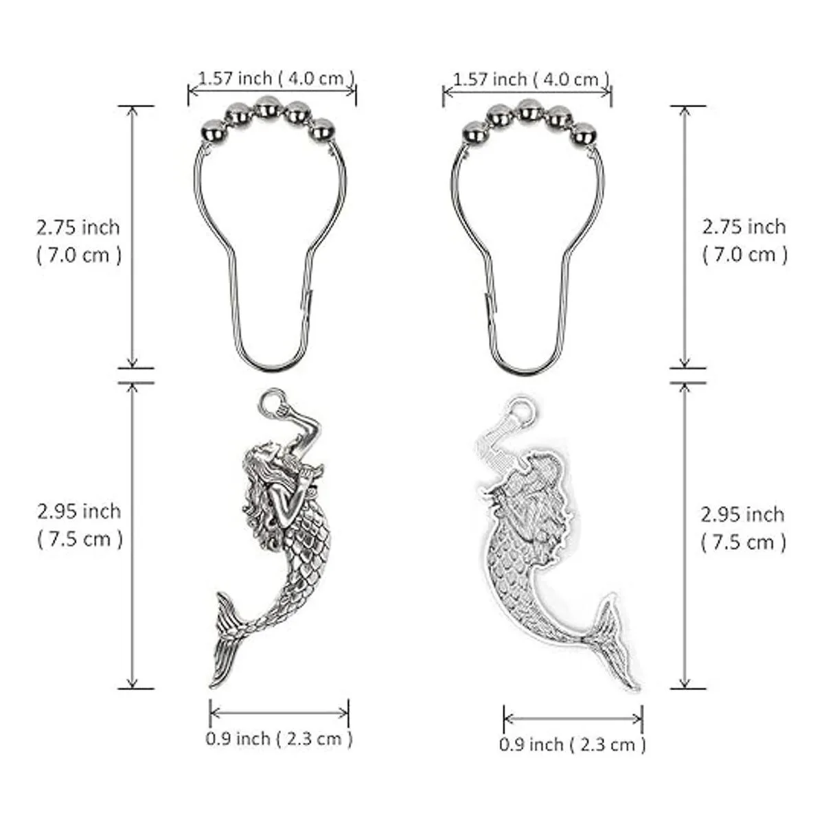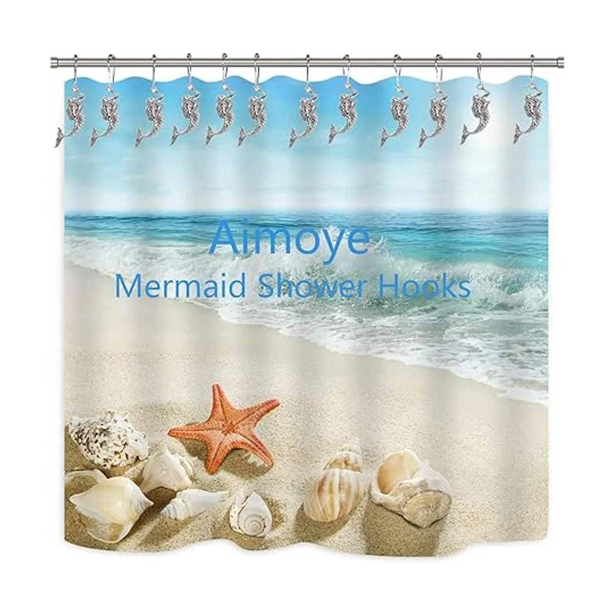 Aimoye Anillos de ganchos para cortina de ducha de sirena, ganchos decorativos para barras de ducha de baño, juego de accesorios de baño, decoración de baño con temática de mar y playa, juego de 12