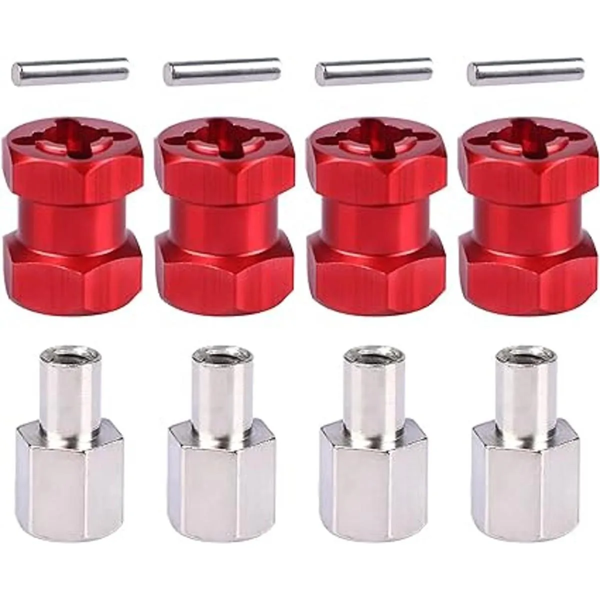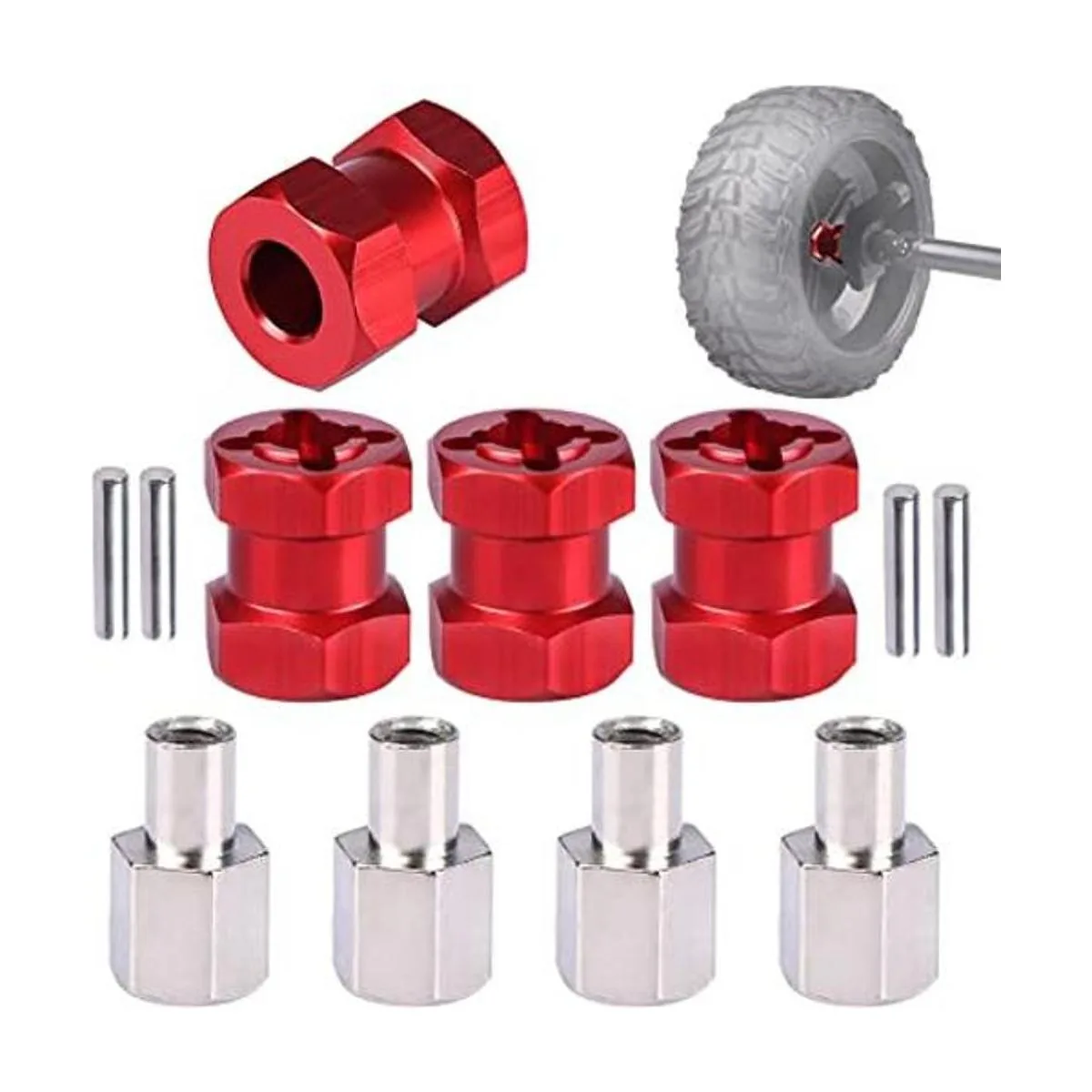AIMROCK Extensión de cubo hexagonal de 0.472 in, espaciador de rueda RC de 0.591 in para 110 Axial SCX10 SCX10 II Wraith Redcat Gen7 Gen8 D90 actualizaciones de camiones sobre orugas rojo, 0.591 in