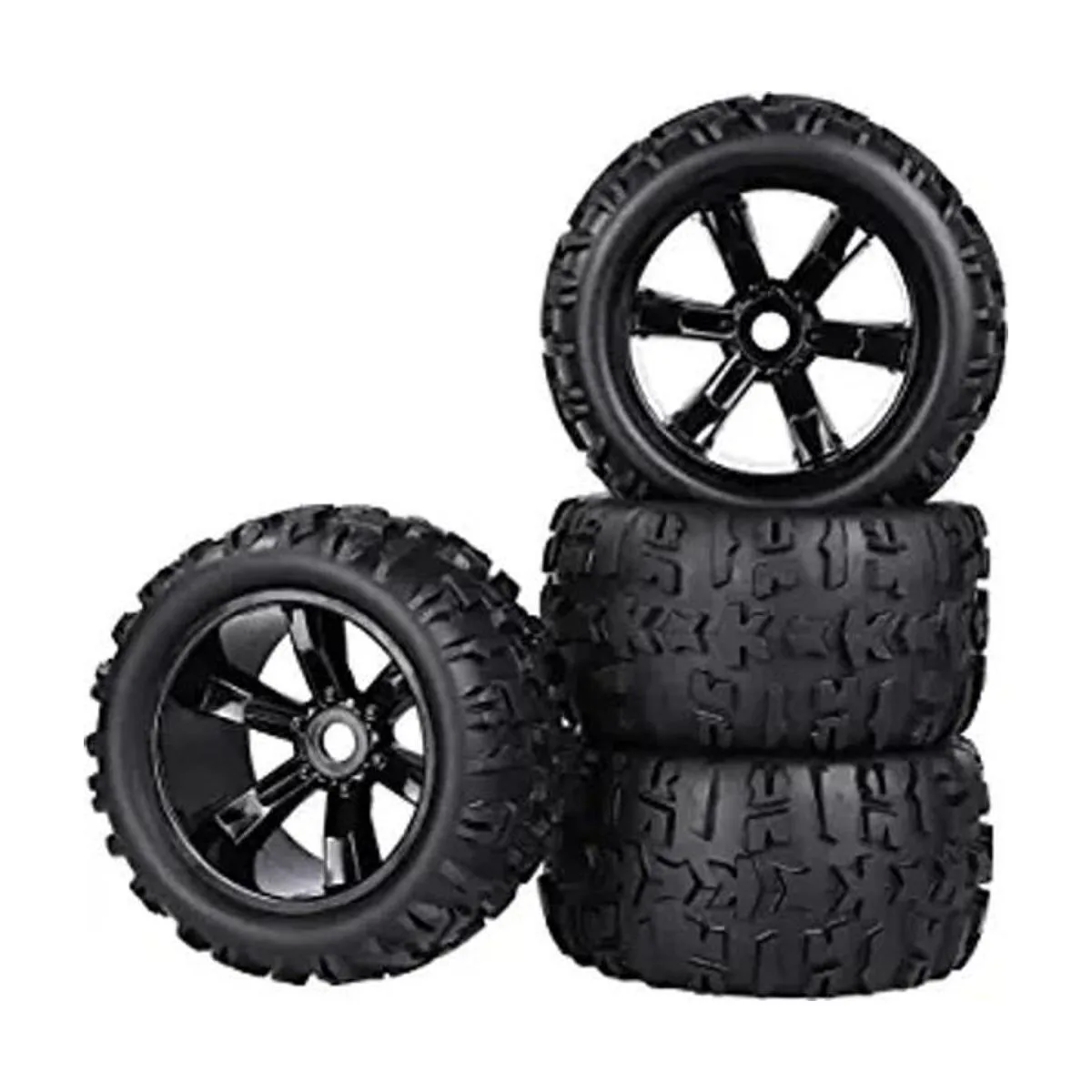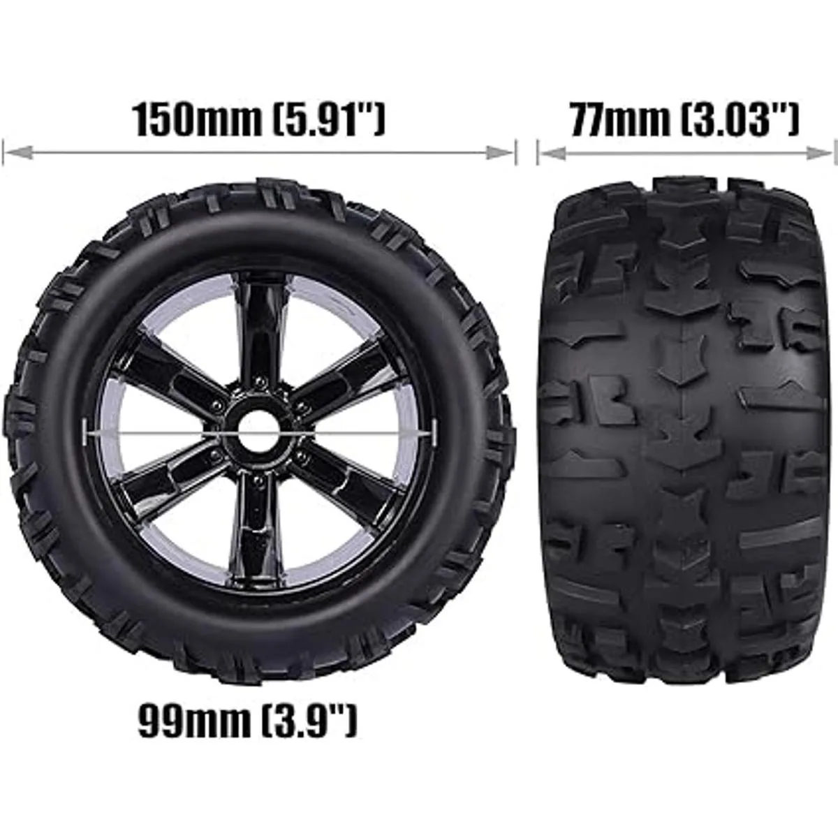 Juego de ruedas y neumáticos premontados, ahorra tiempo para pegar, más tiempo para divertirse. Las lengetas de trituración de gran tamaño te ofrecen un gran agarre en hierba, barro, suciedad y material suelto. Mejor tracción, mejor resistencia al desgaste, un combo de ruedas y neumáticos imprescindibles para principiantes