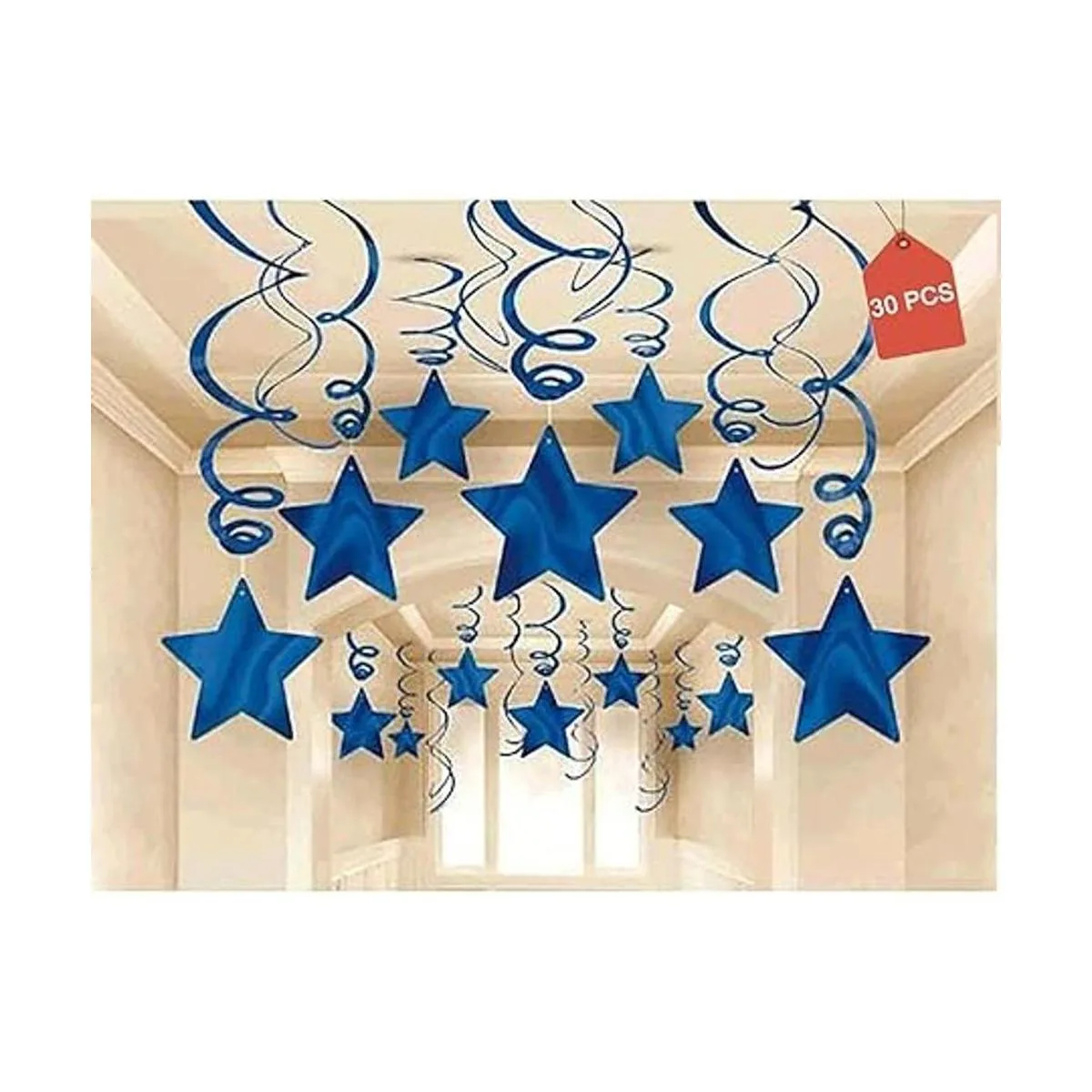 AimtoHome Decoraciones de remolinos de fiesta, remolino colgante para decoración de techo, azul con estrella, paquete de 30