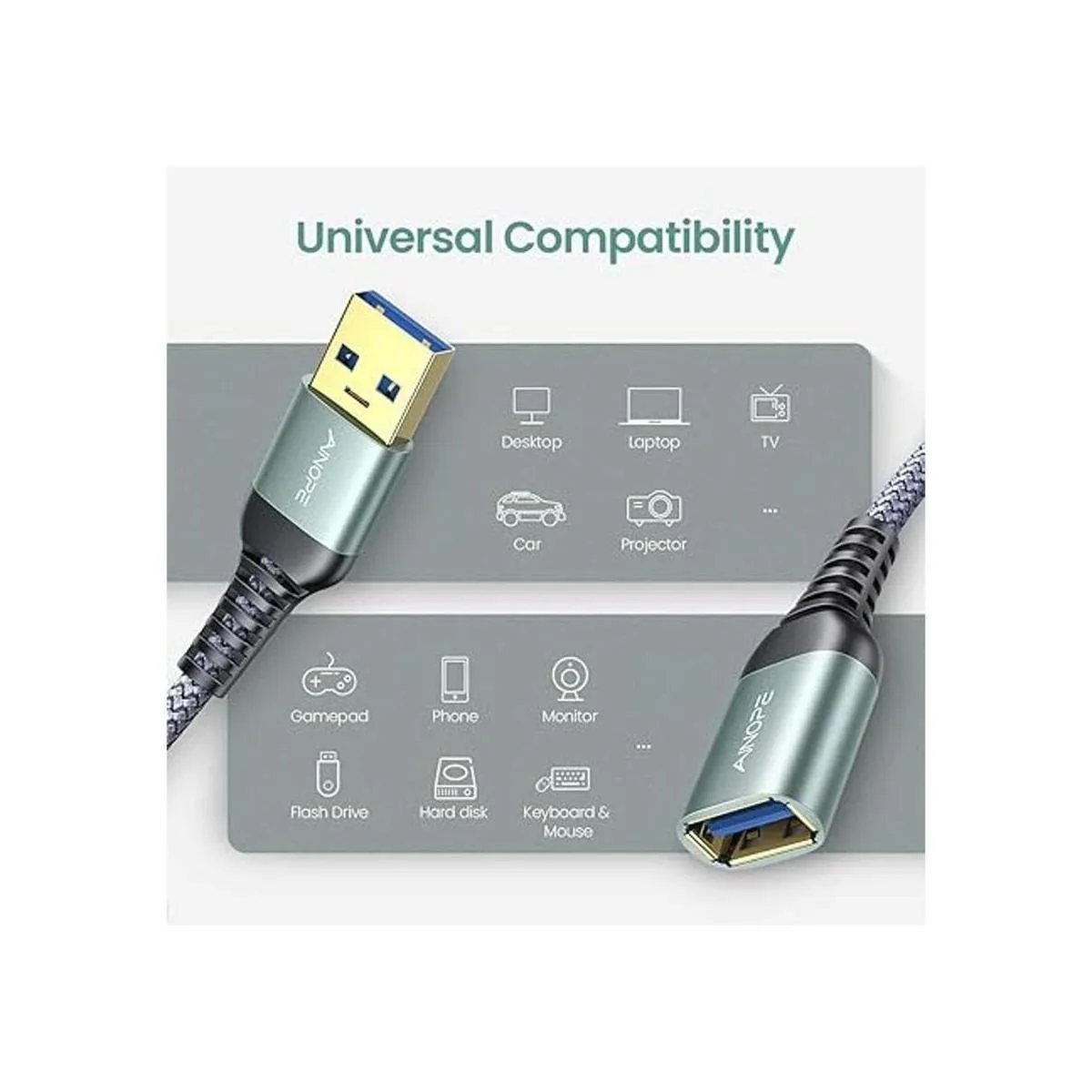 AINOPE Cable de extensión USB 3.0 de 3.3 pies tipo A, macho a hembra. Cable de extensión de alta transferencia de datos, compatible con teclado USB, mouse, unidad flash, disco duro. Gris