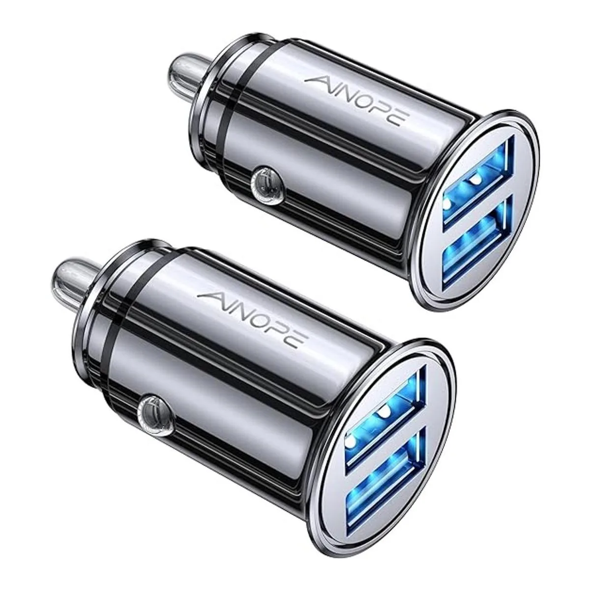 AINOPE Paquete de 2 mini cargadores rápidos de automóvil, adaptador de cargador de automóvil de metal de 4.8 A, ajuste empotrado, cargador USB de automóvil de doble puerto compatible con iPhone 13, 12, 11 Pro Max 8 Plus 7 6s, Samsung Galaxy S2110987, iPad Kindle