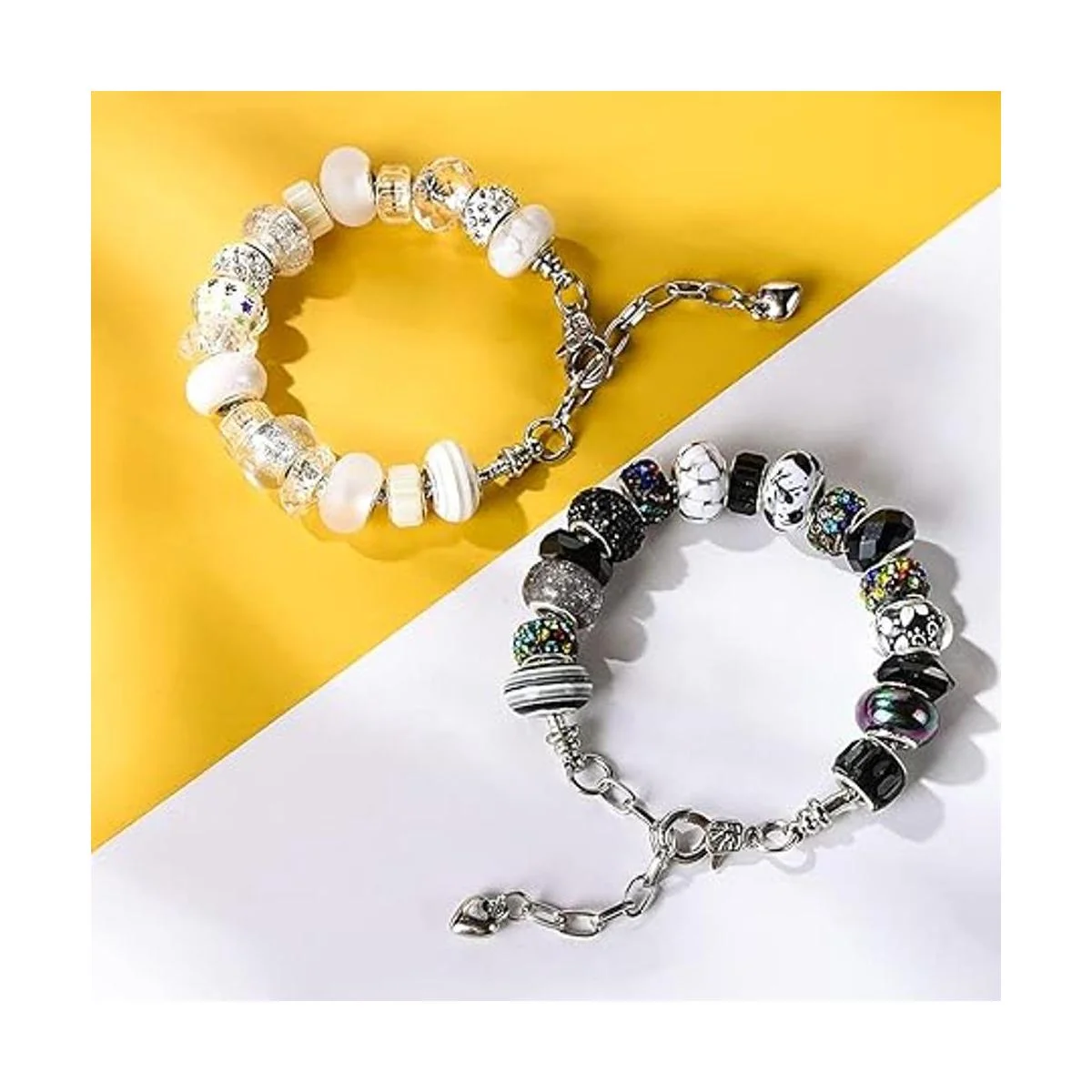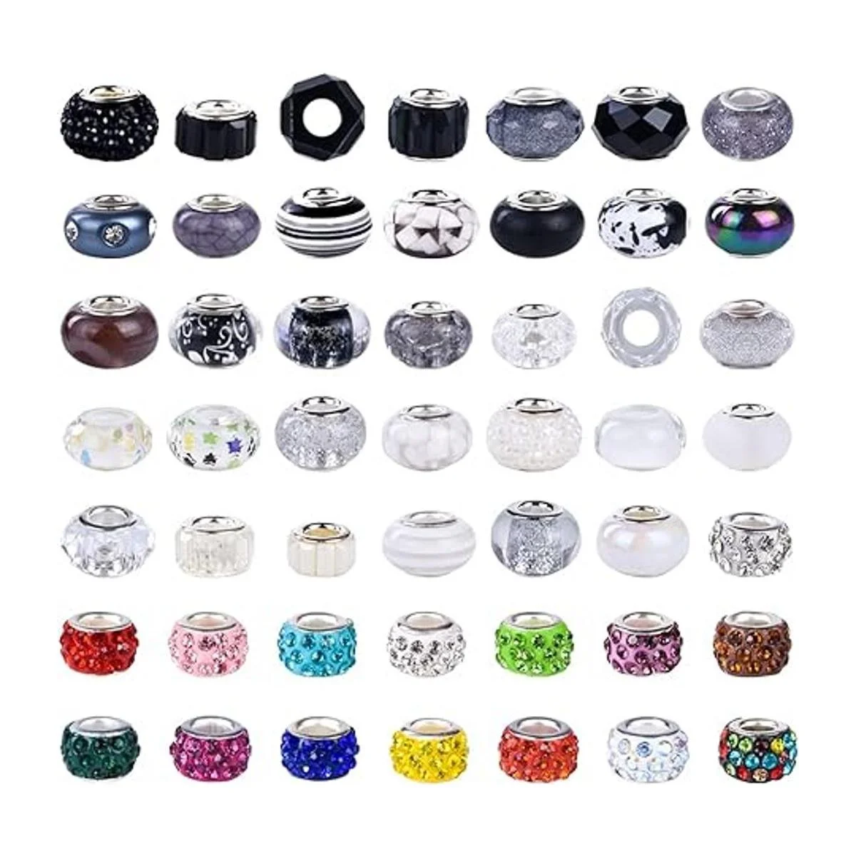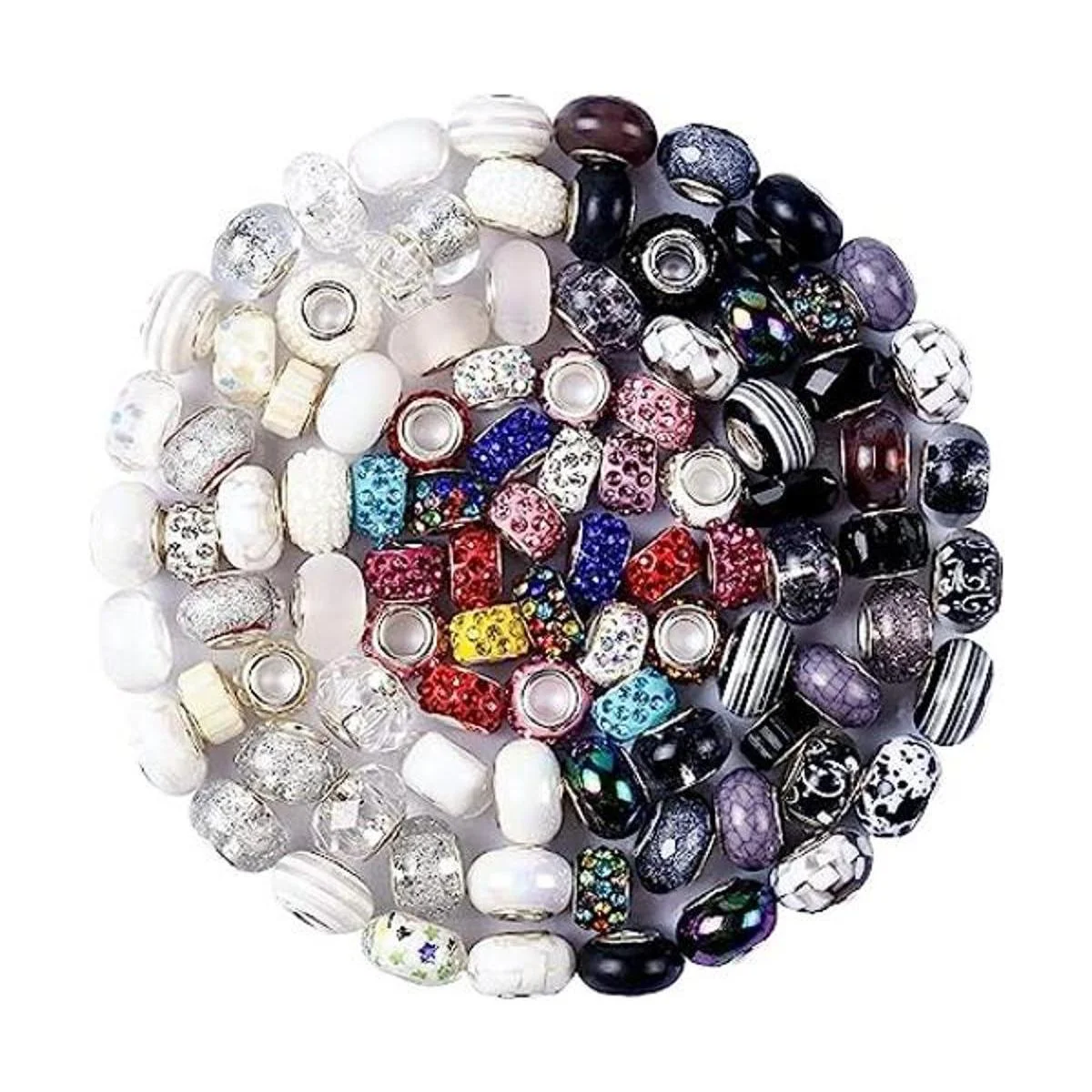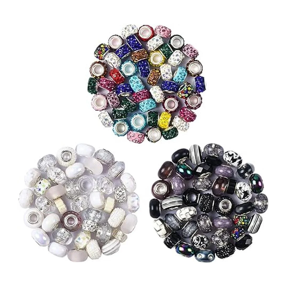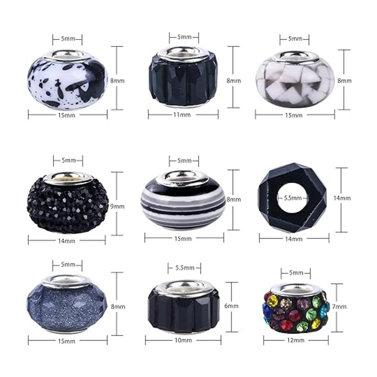 Aipridy Surtido de cuentas de agujero grande europeo, cuentas espaciadoras de diamantes de imitación para manualidades, abalorios, pulseras y joyas negroblanco