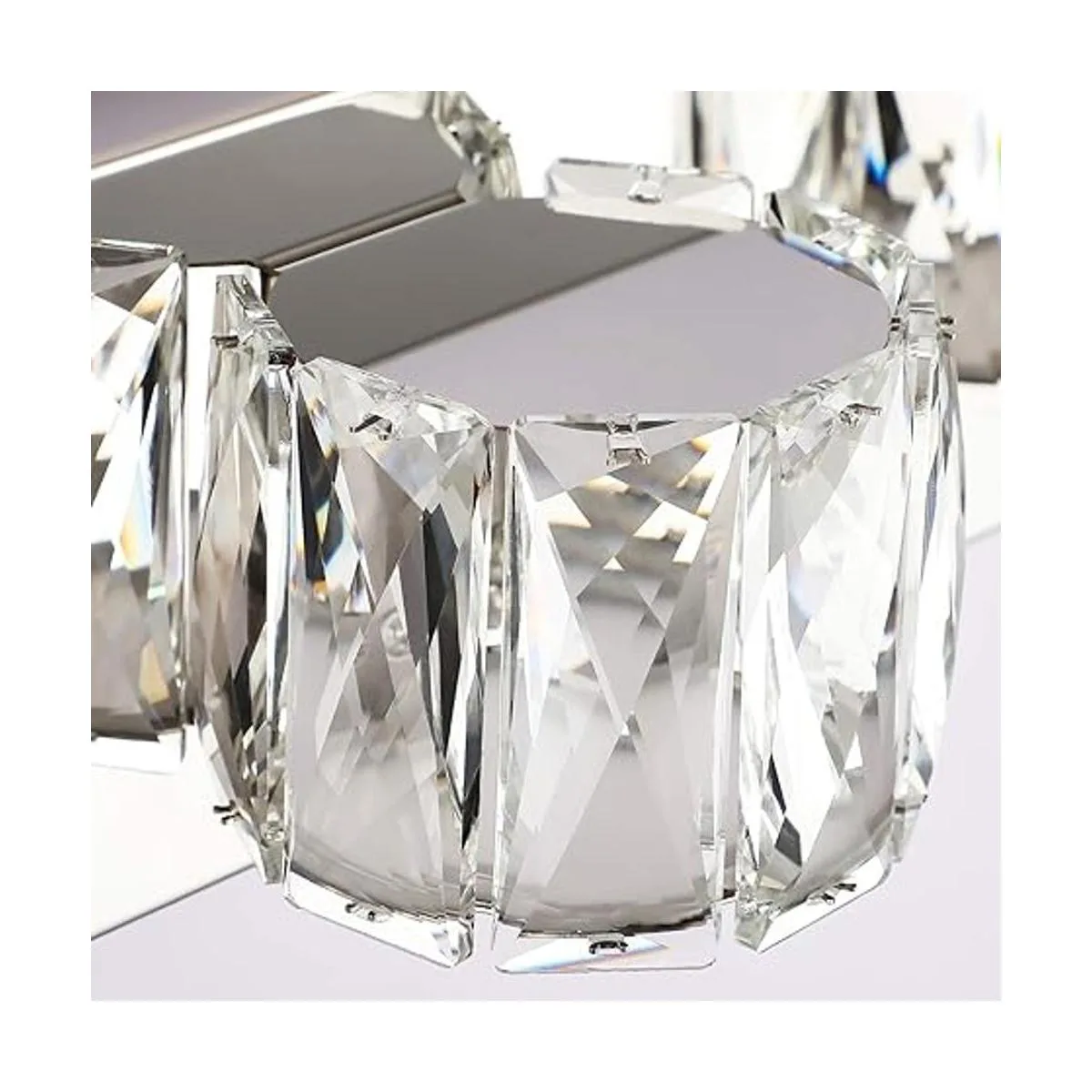 2. Material: acero inoxidable de espejo, fuerte resistencia a la corrosión. Hermoso cristal K9, liberando un efecto de luz brillante. Luz LED incluida