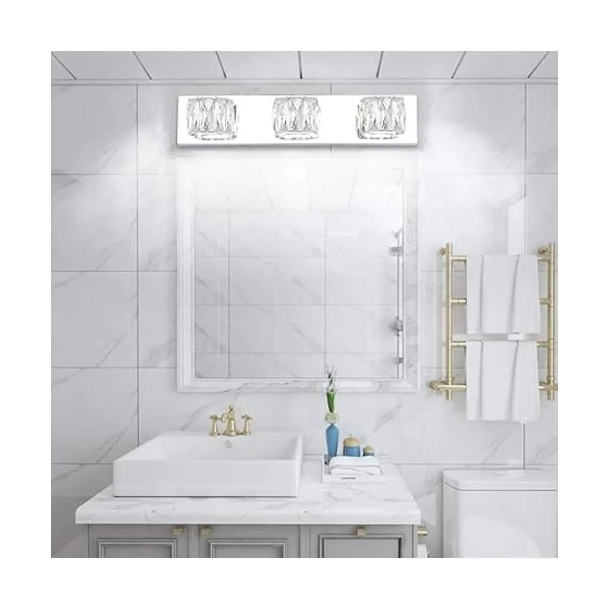 Aipsun 3 luces de tocador de cristal sobre el espejo, modernas luces LED de tocador para accesorios de iluminación de tocador de baño luces blancas