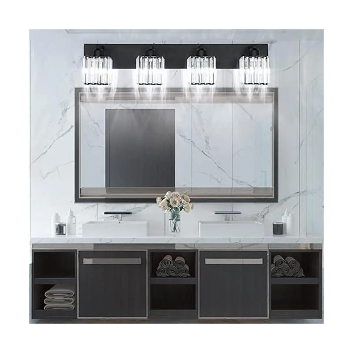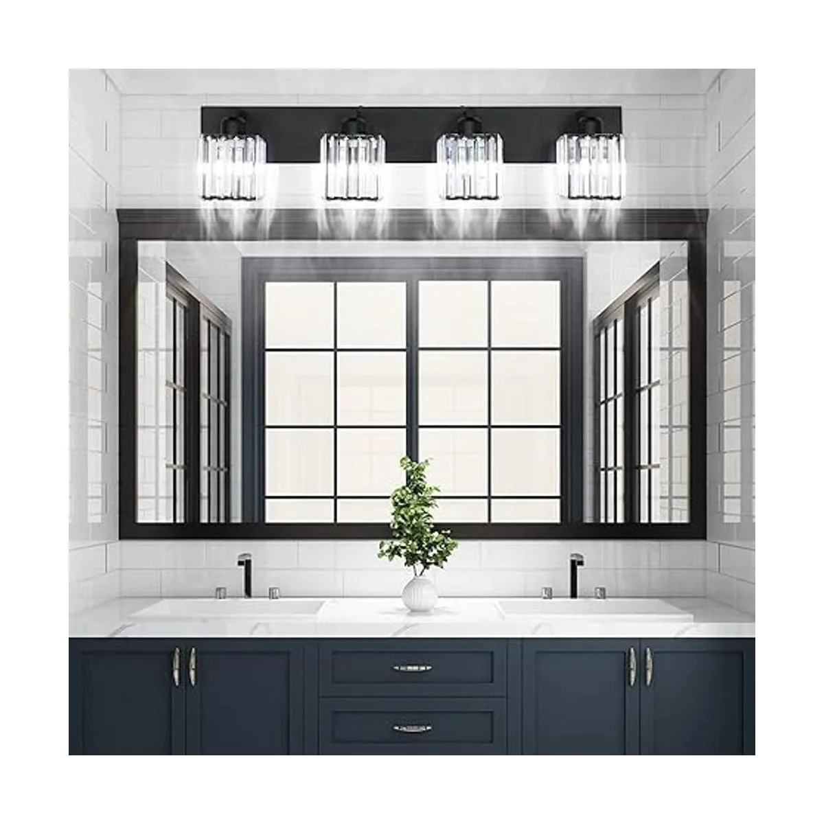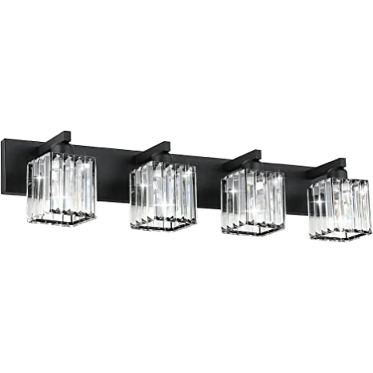 Aipsun Lámpara negra para tocador de baño, luz moderna de cristal para baño, 4 luces excluye bombilla