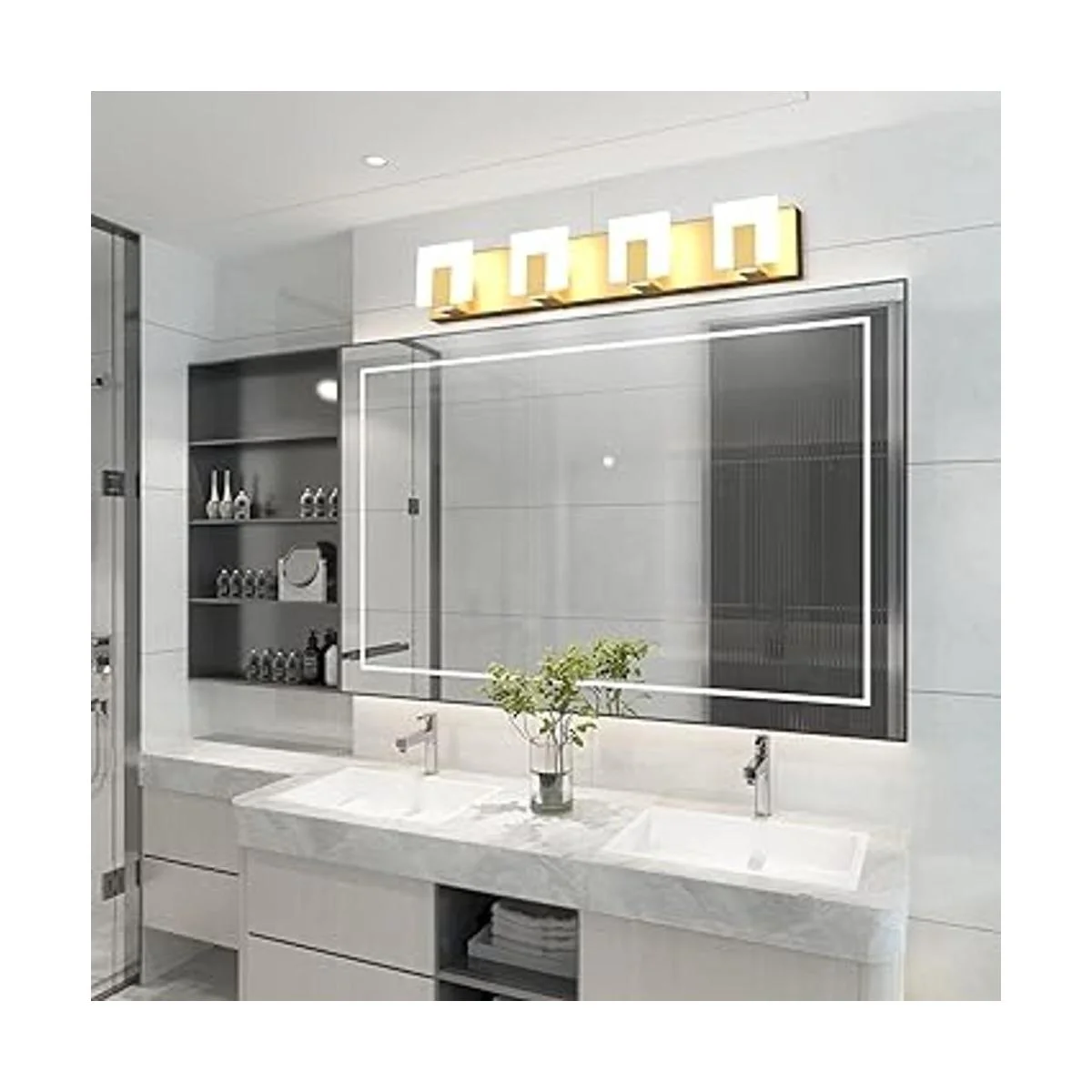 Aipsun Luces de tocador doradas para baño, modernas luces LED, 4 luces de tocador de baño, luces de pared arriba y abajo, 6000 K