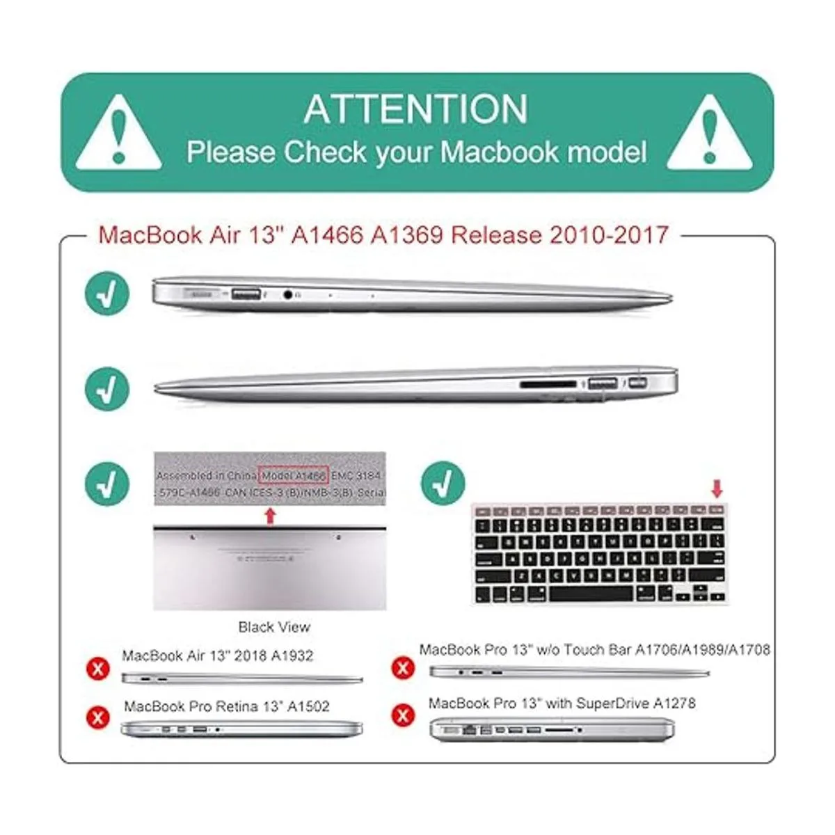 Exclusivamente diseñada para Apple Macbook Air de 13 pulgadas sin Touch ID solo versión 2010 2017 número de modelo: A1466 A1369. Comprueba el modelo de MacBook A1466 o A1369 en la parte posterior antes de comprar. No compatible con otros modelos de MacBook.